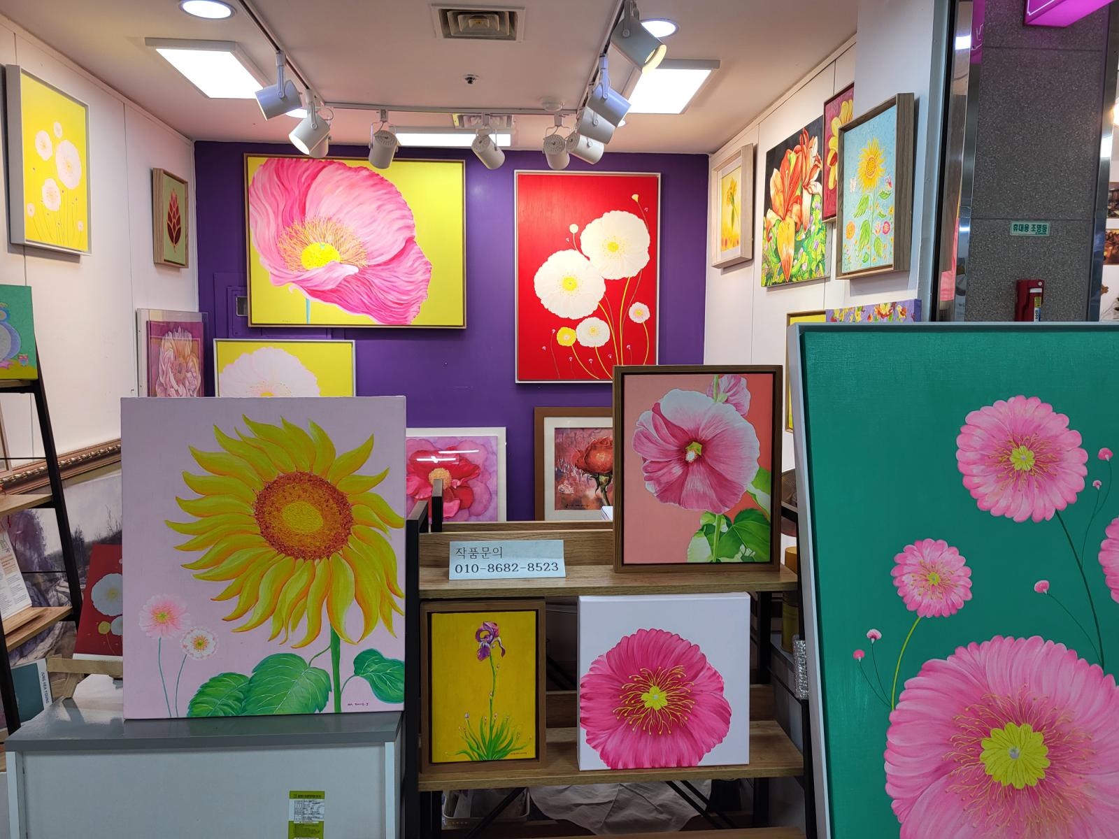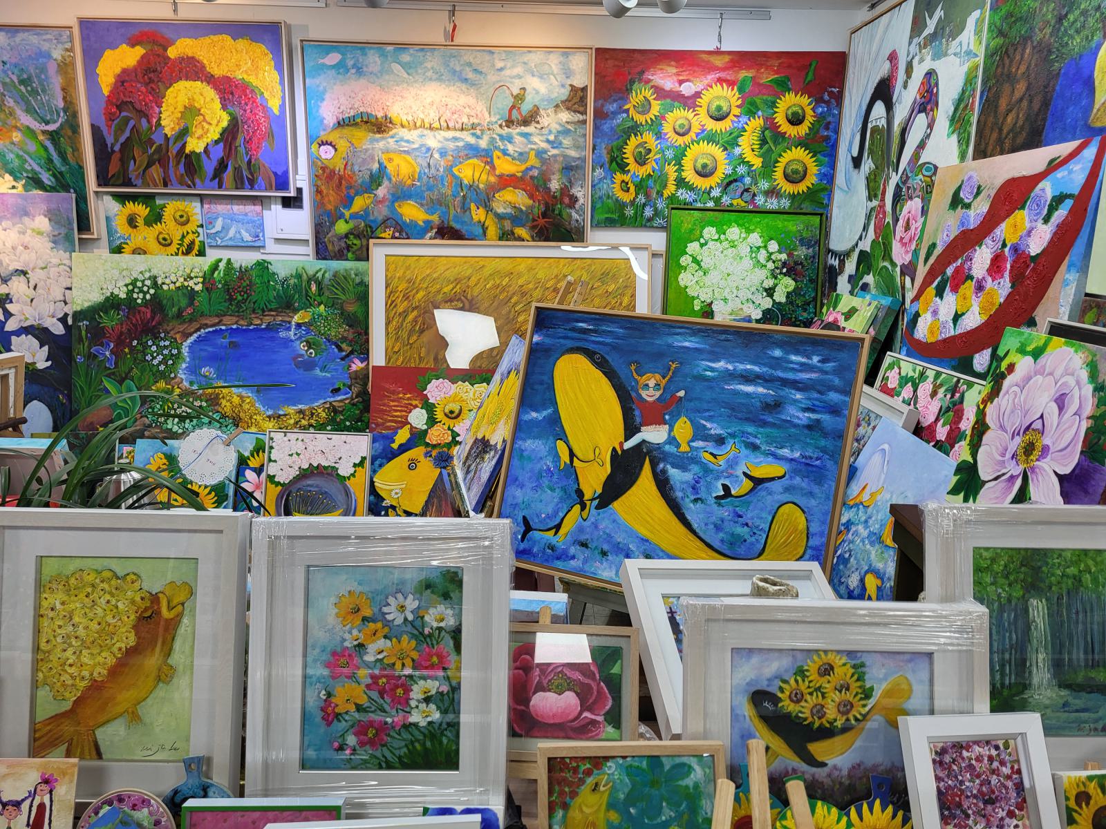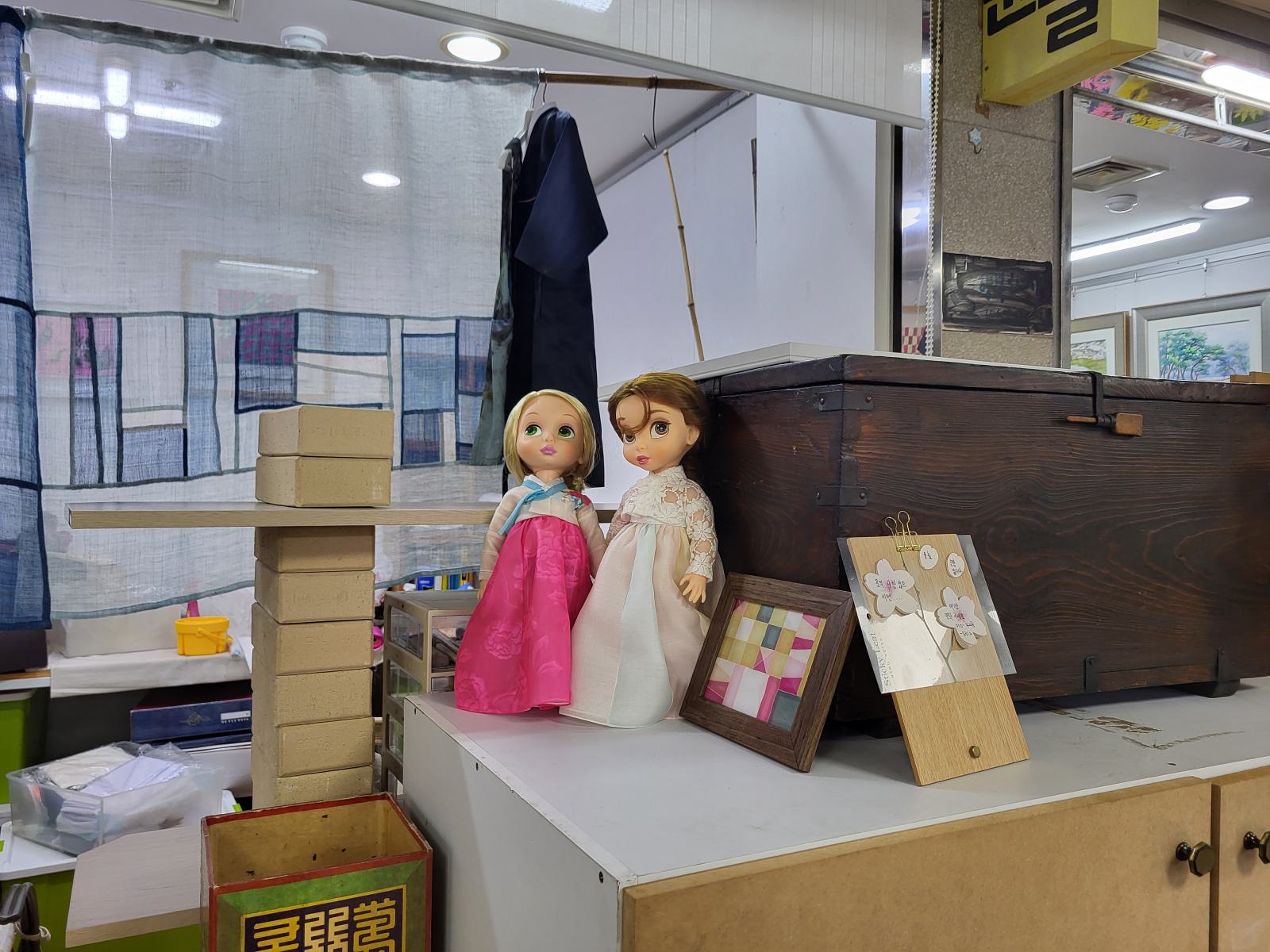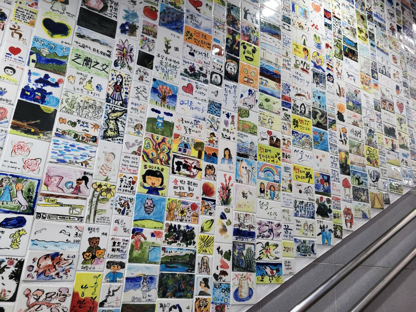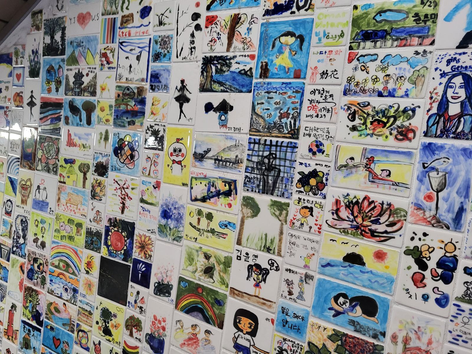 Ein paar Meter die Straße hoch führt eine Treppe in einen klimatisierten unterirdischen Gang. Art Street stand oben auf einem Wegweiser, wir vermuteten eine Kunstgalerie. Die fanden wir zunächst auch, sogar mehrere, in unterschiedlichen Stilen. Allerdings war nur wenig besonderes dabei. Daneben gab es Läden mit Dekoartikeln und mehrere Gardinenstände, wo auch gleich jemand mit Nähmaschine saß. Alle Läden waren offen, aber außer bei den Gardinen gab es keine Menschen, nur Telefonnummern, falls man etwas kaufen will. Es dauerte eine Weile, bis wir verstanden, dass wir nicht in einer Kunstausstellung, sondern sowas wie dem koreanischen Ikea gelandet waren.
