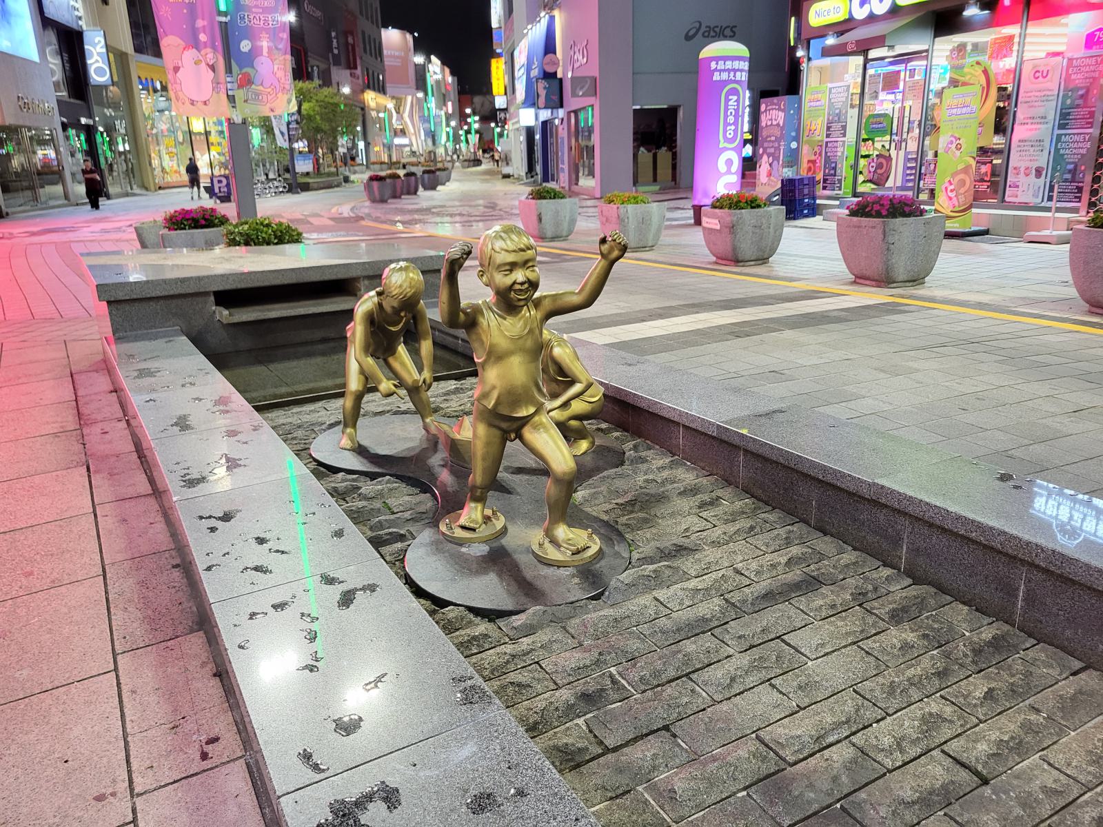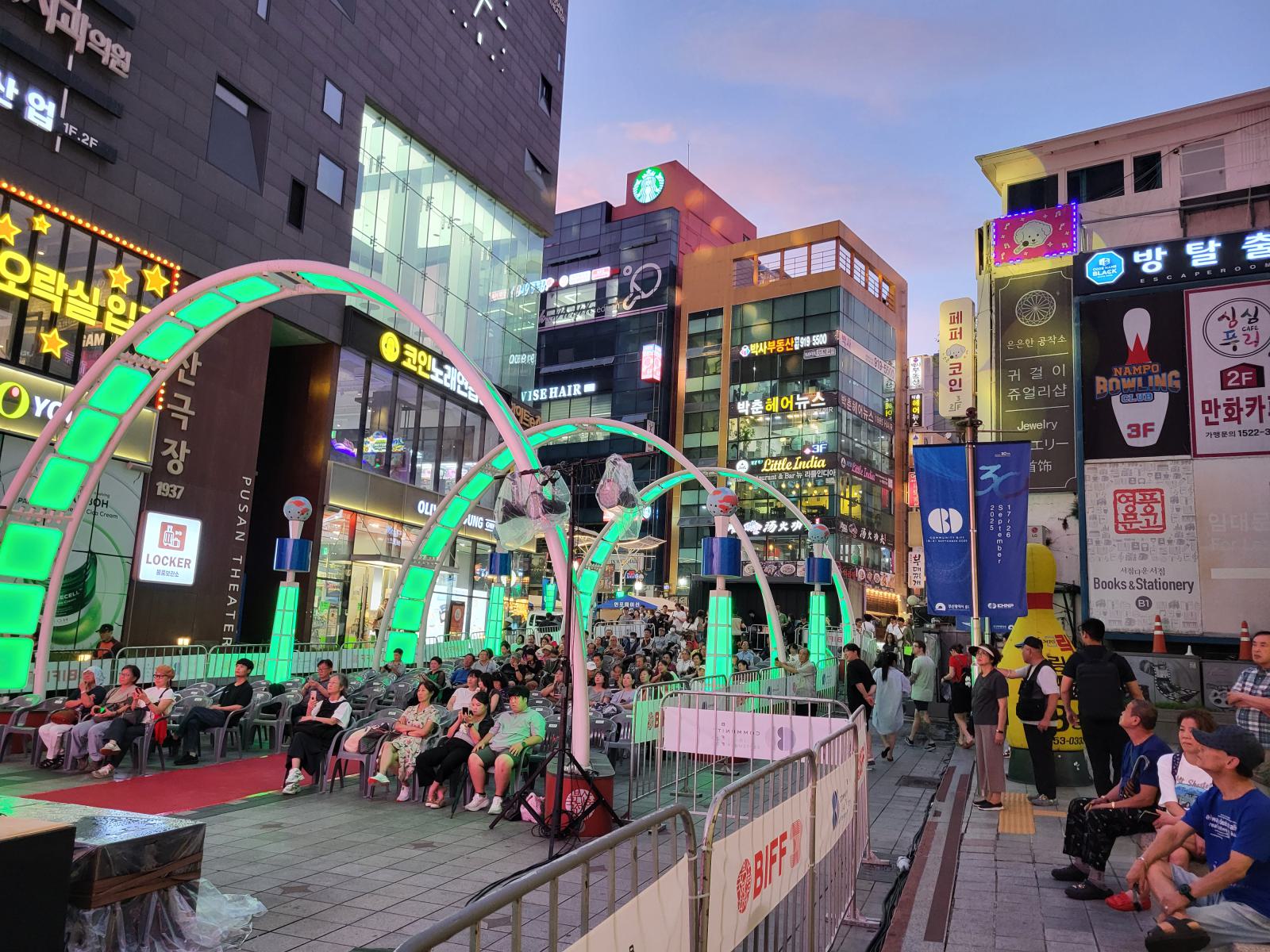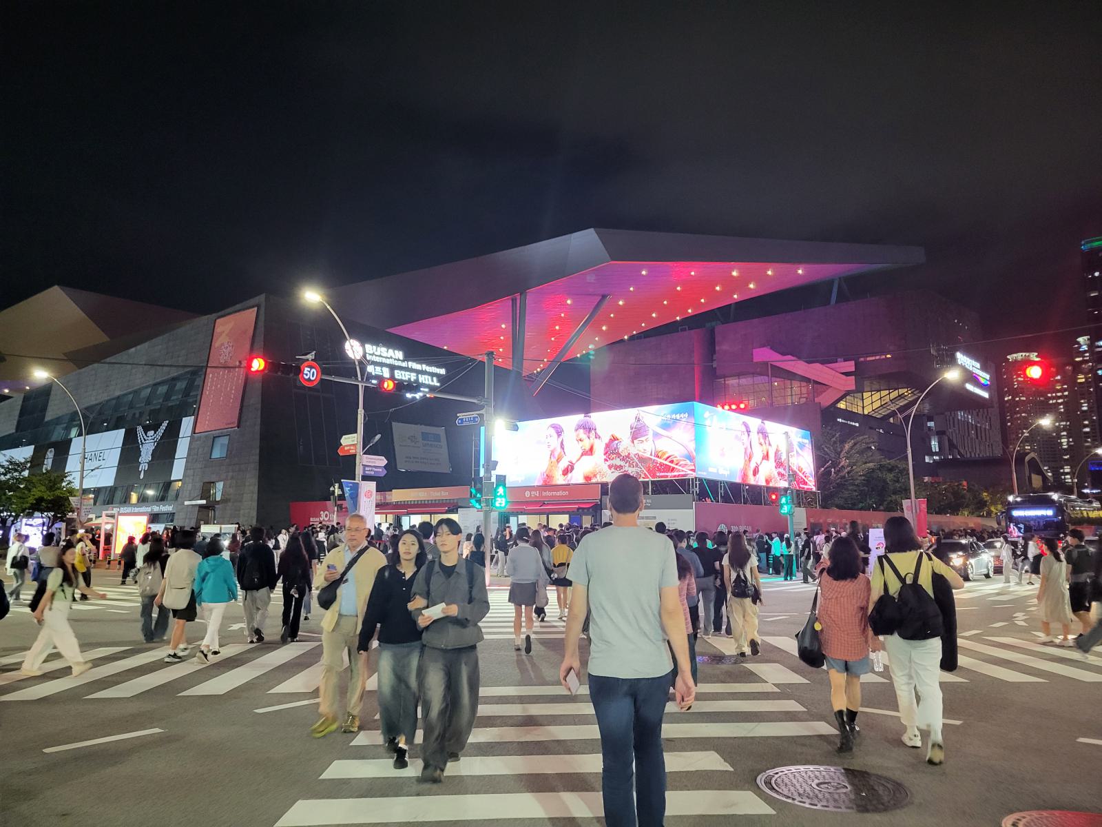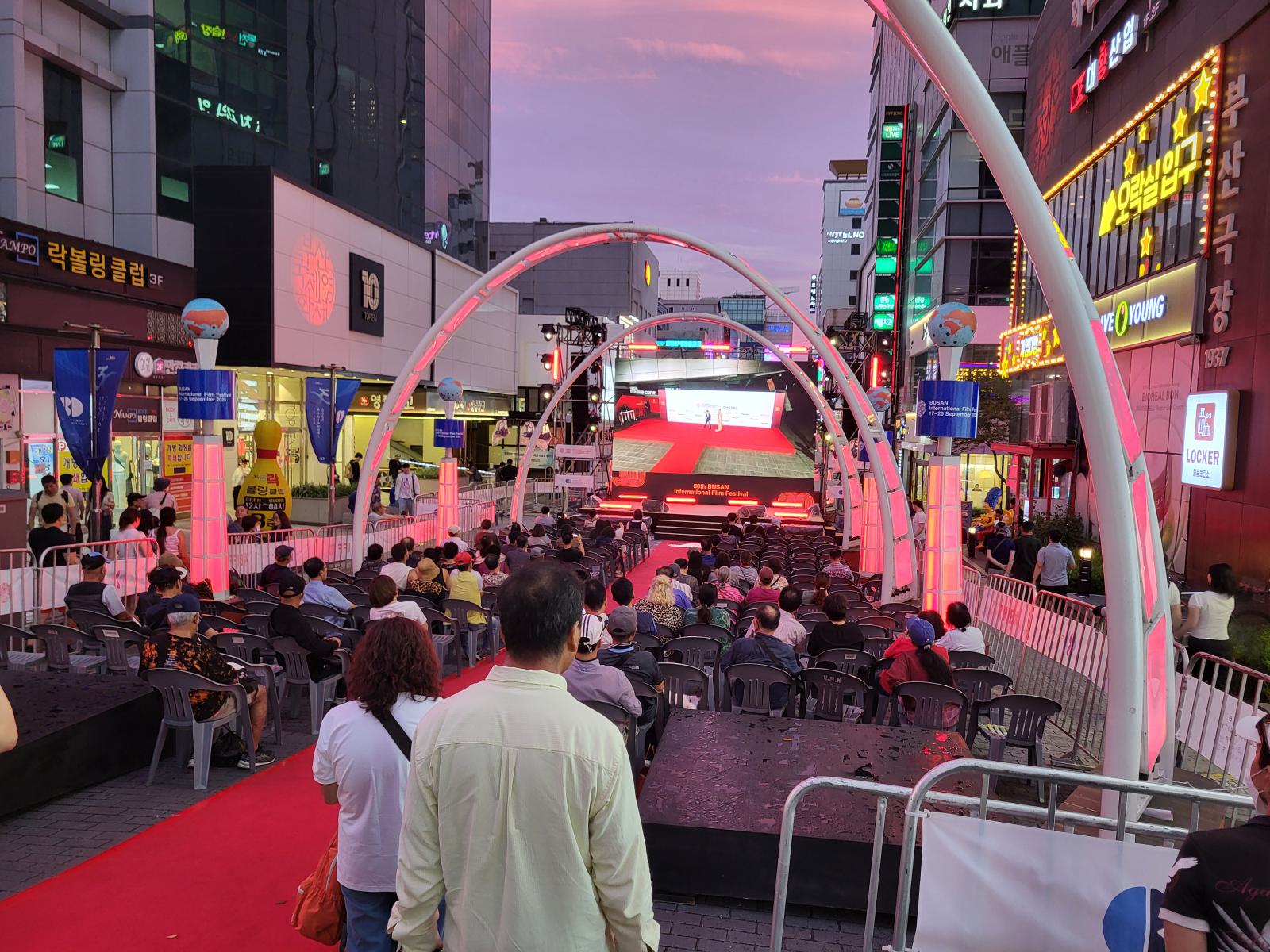 Direkt neben unserem Hotel in Nampo liegt der BIFF Square, früher zentraler Punkt für das Busan International Film Festival, das zufällig gerade stattfand. Auf dem kleinen Platz war eine Leinwand aufgebaut, auf der man einige Veranstaltungen, die jetzt in Centum City auf viel größerem Raum stattfinden, verfolgen konnte.