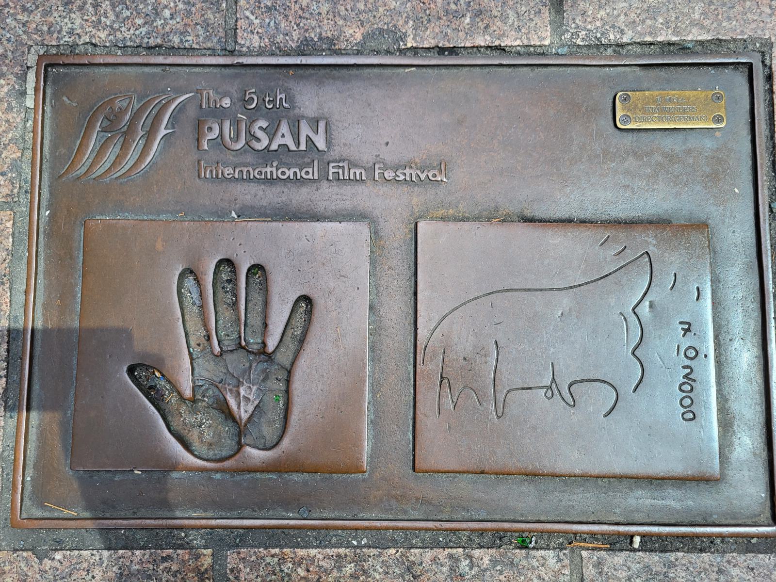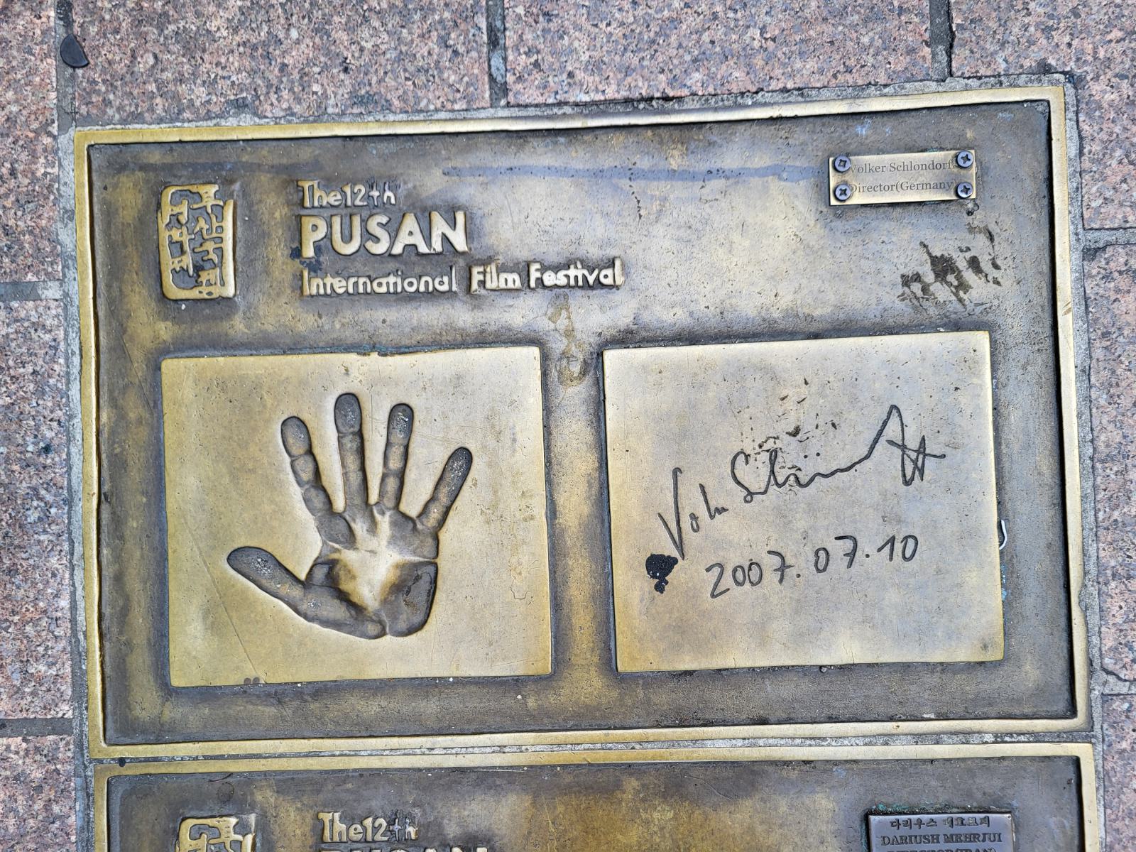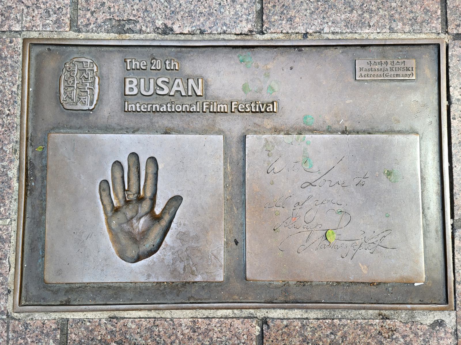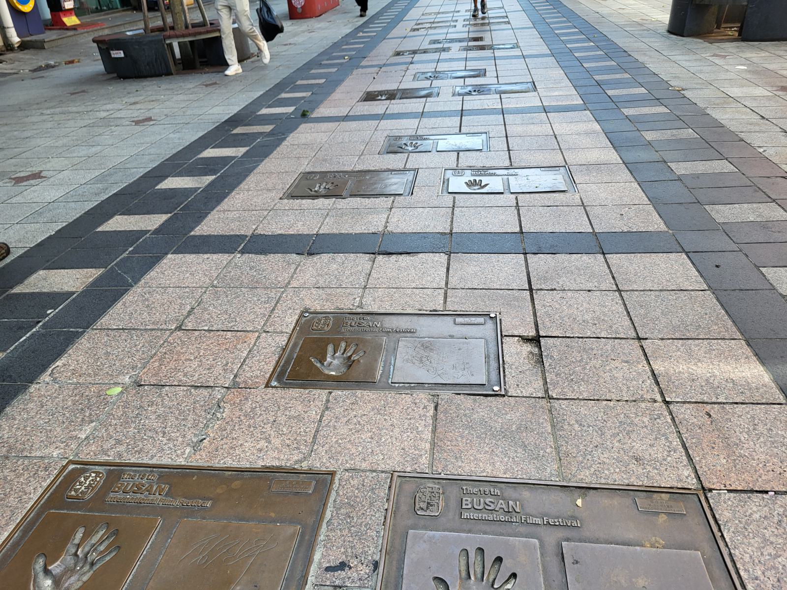 Die Straßen, die vom Platz abgehen, sind im Muster eines Films gepflastert, in dessen Bildern sich die Fuß- und Handabdrücke berühmter Regisseure und Schauspieler finden, deren Filme hier auf dem Festival liefen. Auch deutsche Künstler sind darunter, wir fanden z.B. Wim Wenders und Nastassja Kinski.