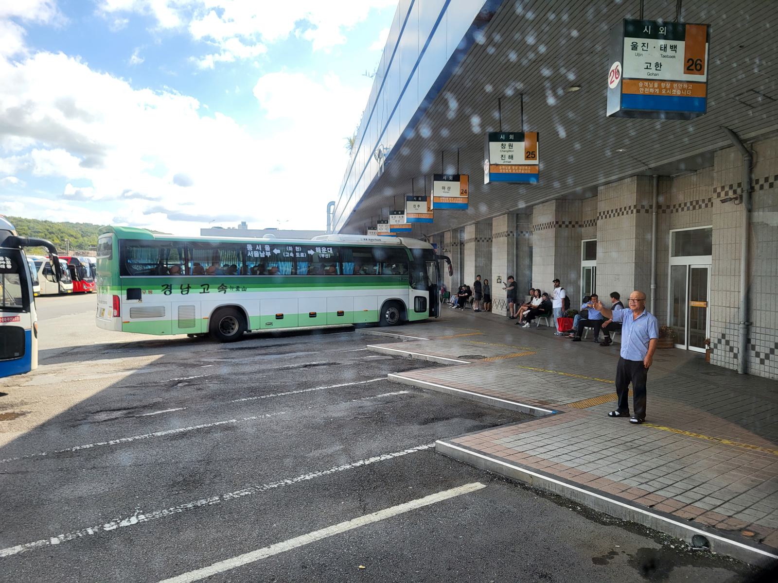 Völlig durchgeschüttelt kamen wir am Busbahnhof an und waren so verwirrt, dass wir ohne nachzudenken den nächsten Bus buchten. So schaffen wir es doch noch, uns kurz und schmerzlos von dieser schönen Stadt zu verabschieden. 10 Minuten Zeit für Gepäck abholen, Pipi machen, Bussteig 37 suchen, noch halb im Rennen warfen wir die Rucksäcke ins Gepäckfach und sprangen in den Bus, der sofort abfuhr. Schon 45 Minuten später waren wir in Gyeongju.