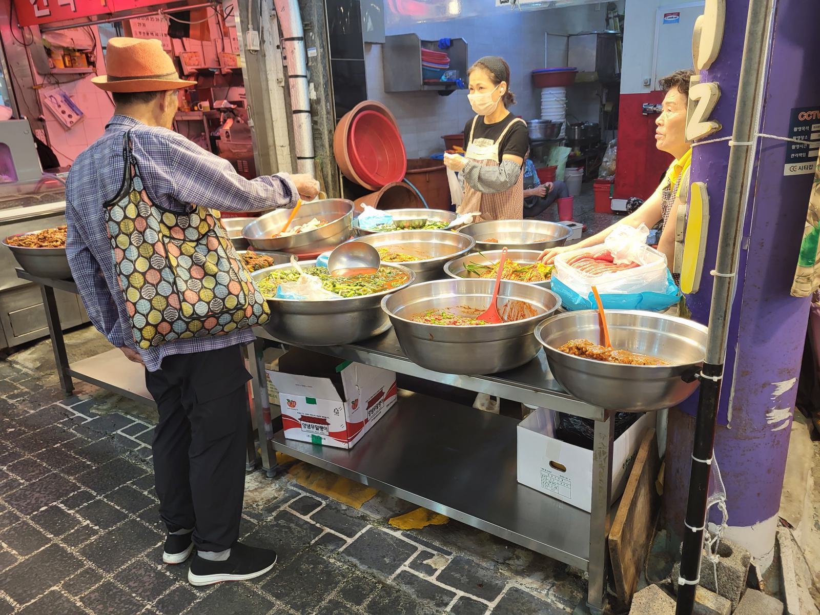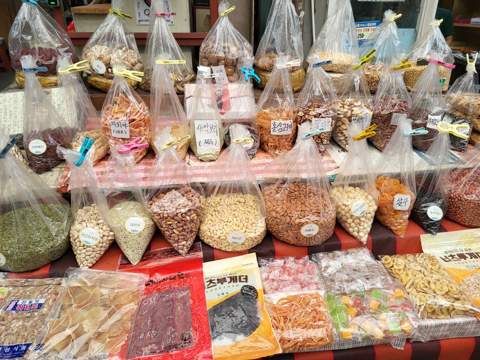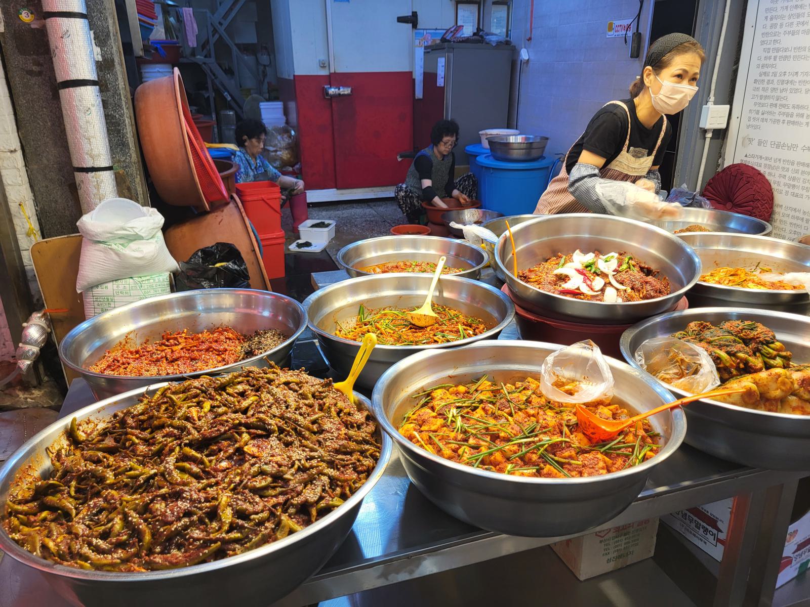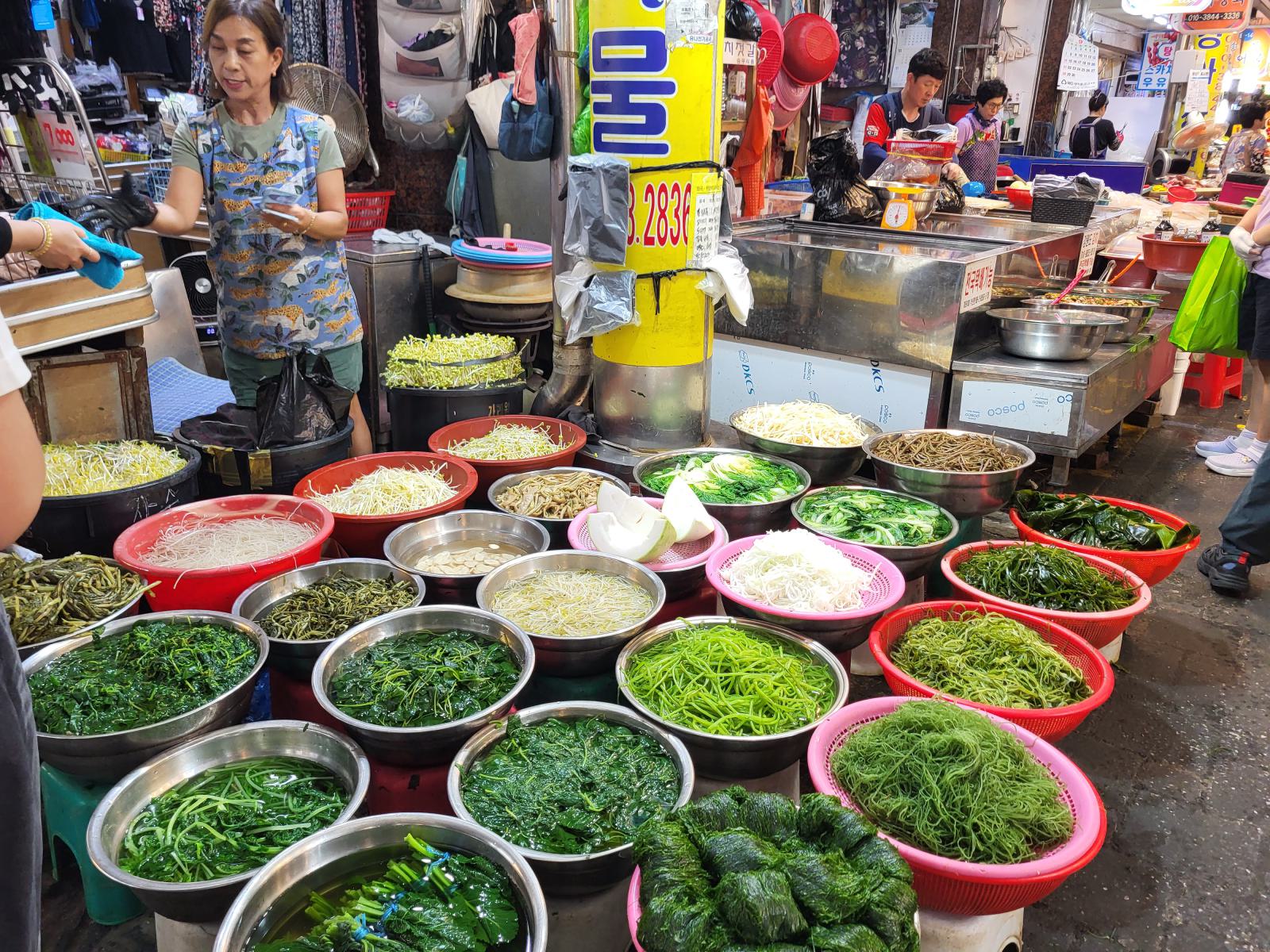 Einige Stände verkaufen nur verschiedene Kimchis, klar, das reicht fürs Sortiment, bisher haben wir keine einzige Mahlzeit ohne bekommen. Nicht mal Frühstück gibt es in diesem Land ohne scharfes, fermentiertes Gemüse.