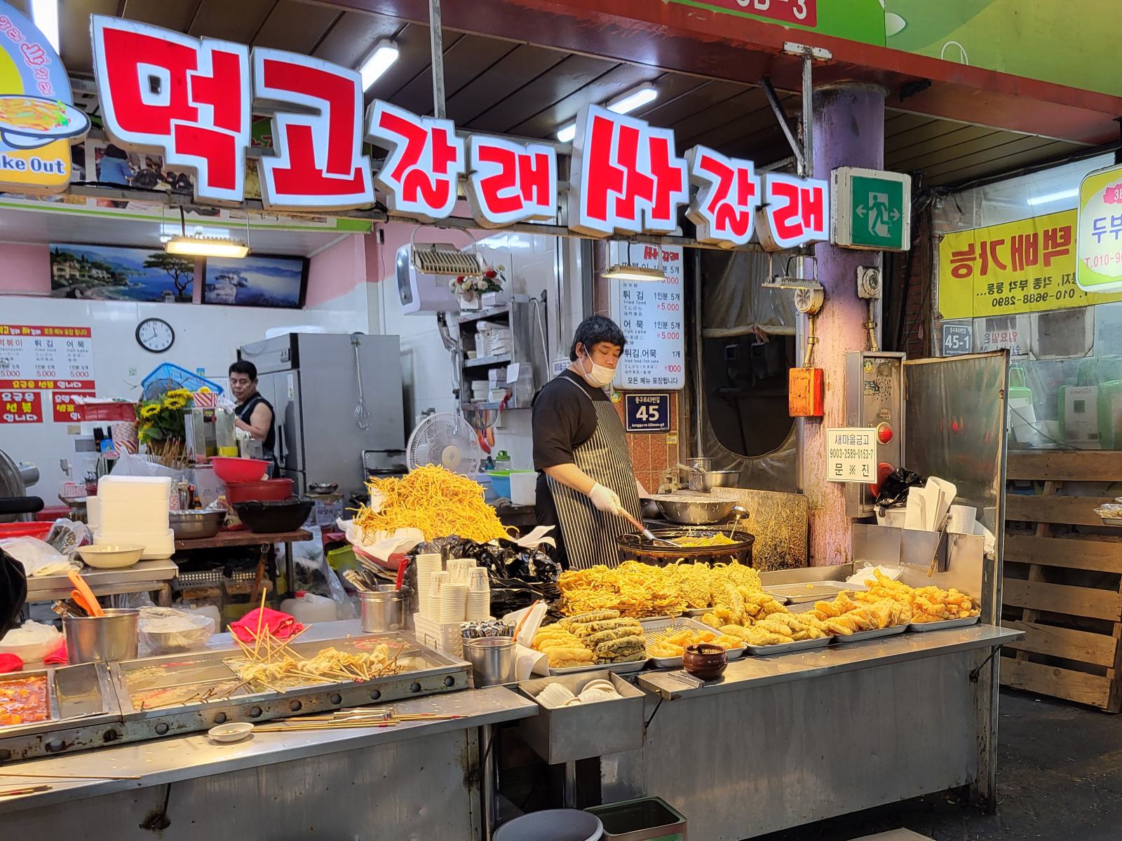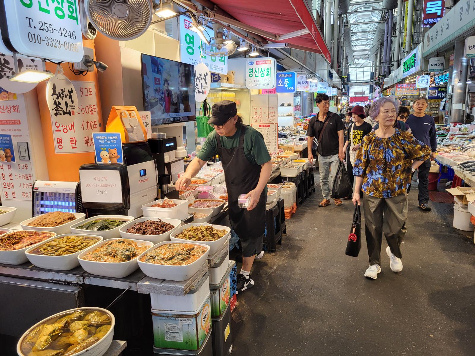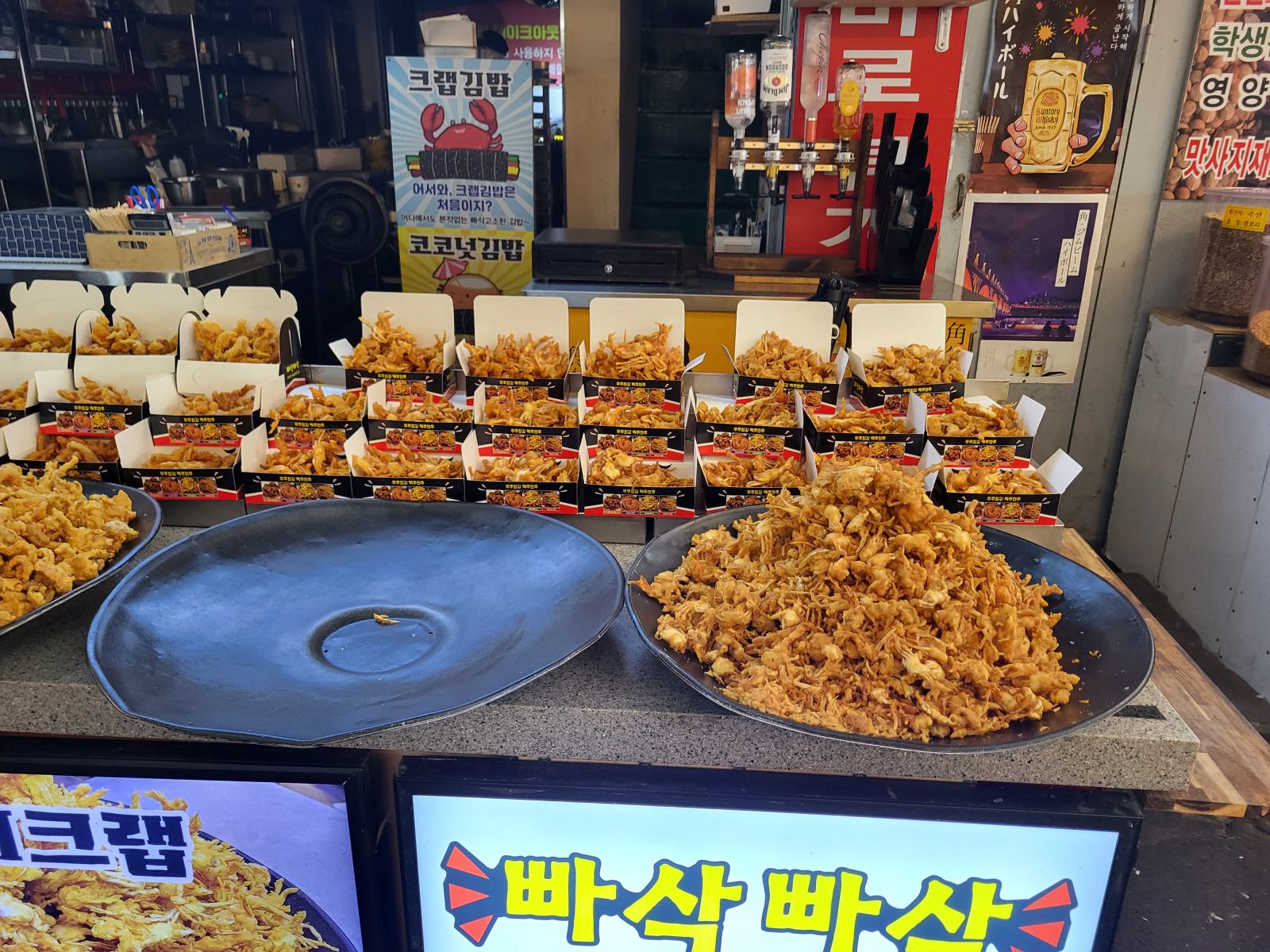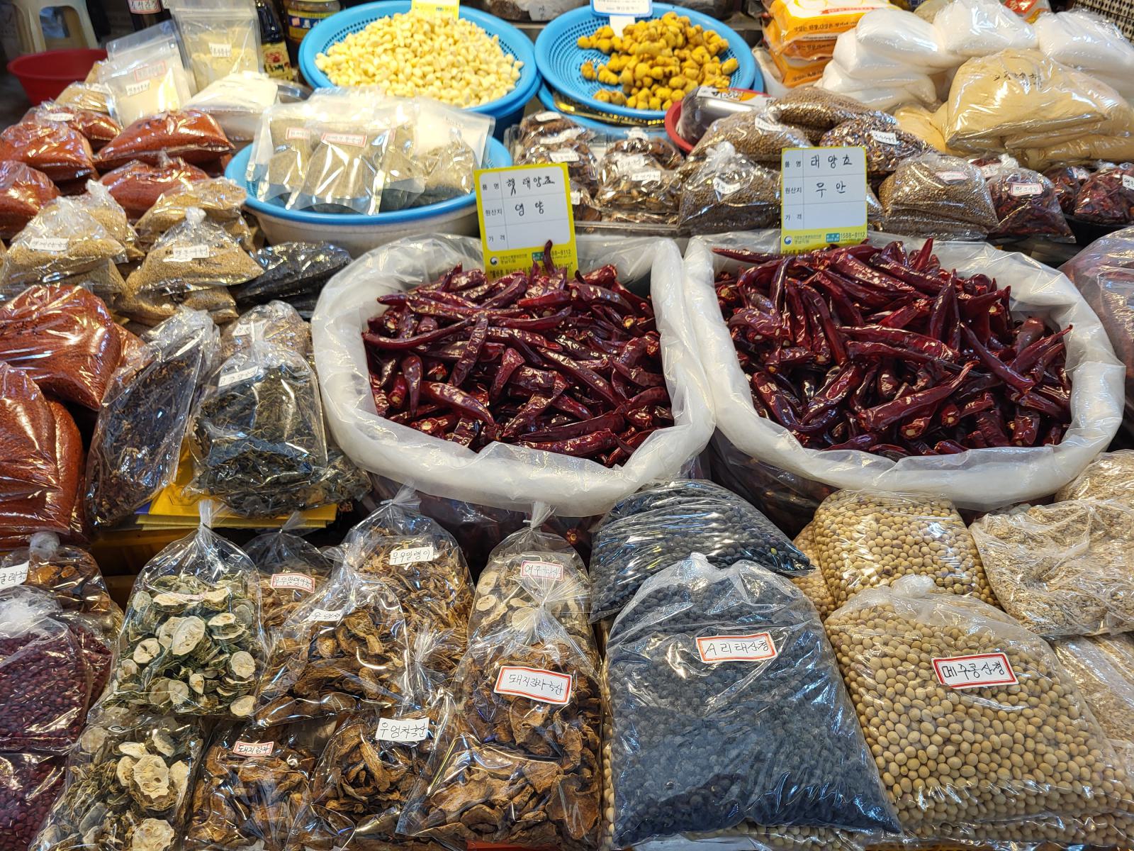 Einige Stände verkaufen nur verschiedene Kimchis, klar, das reicht fürs Sortiment, bisher haben wir keine einzige Mahlzeit ohne bekommen. Nicht mal Frühstück gibt es in diesem Land ohne scharfes, fermentiertes Gemüse.