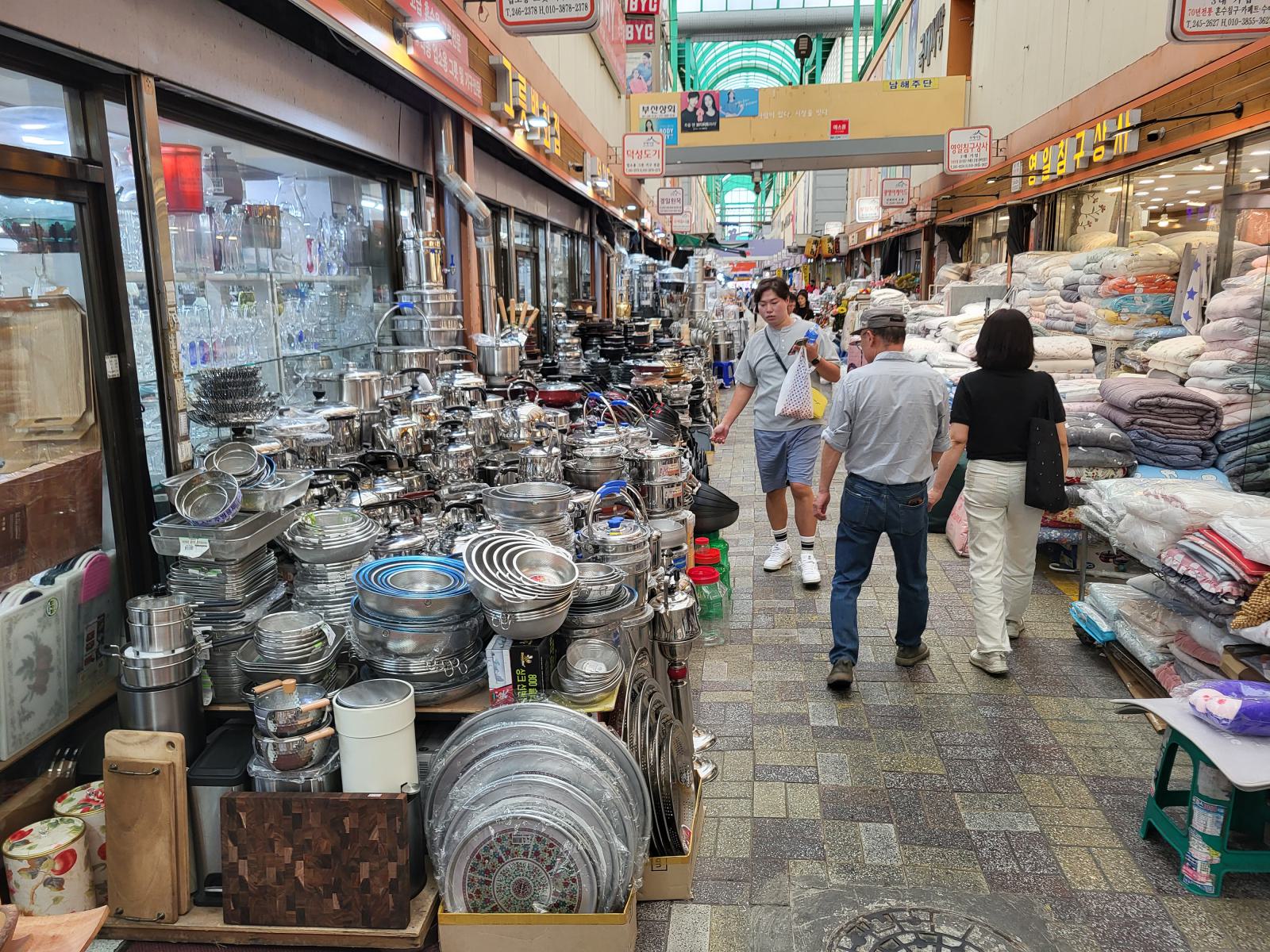 Am anderen Ende des Ganges kamen wir in der Nähe des Gukje Marktes nach oben. Wir waren immer noch verwundert, dass sich in einem so reichen Land das Supermarktkonzept nicht etabliert hat und Einrichtungshäuser scheinbar auch nicht.