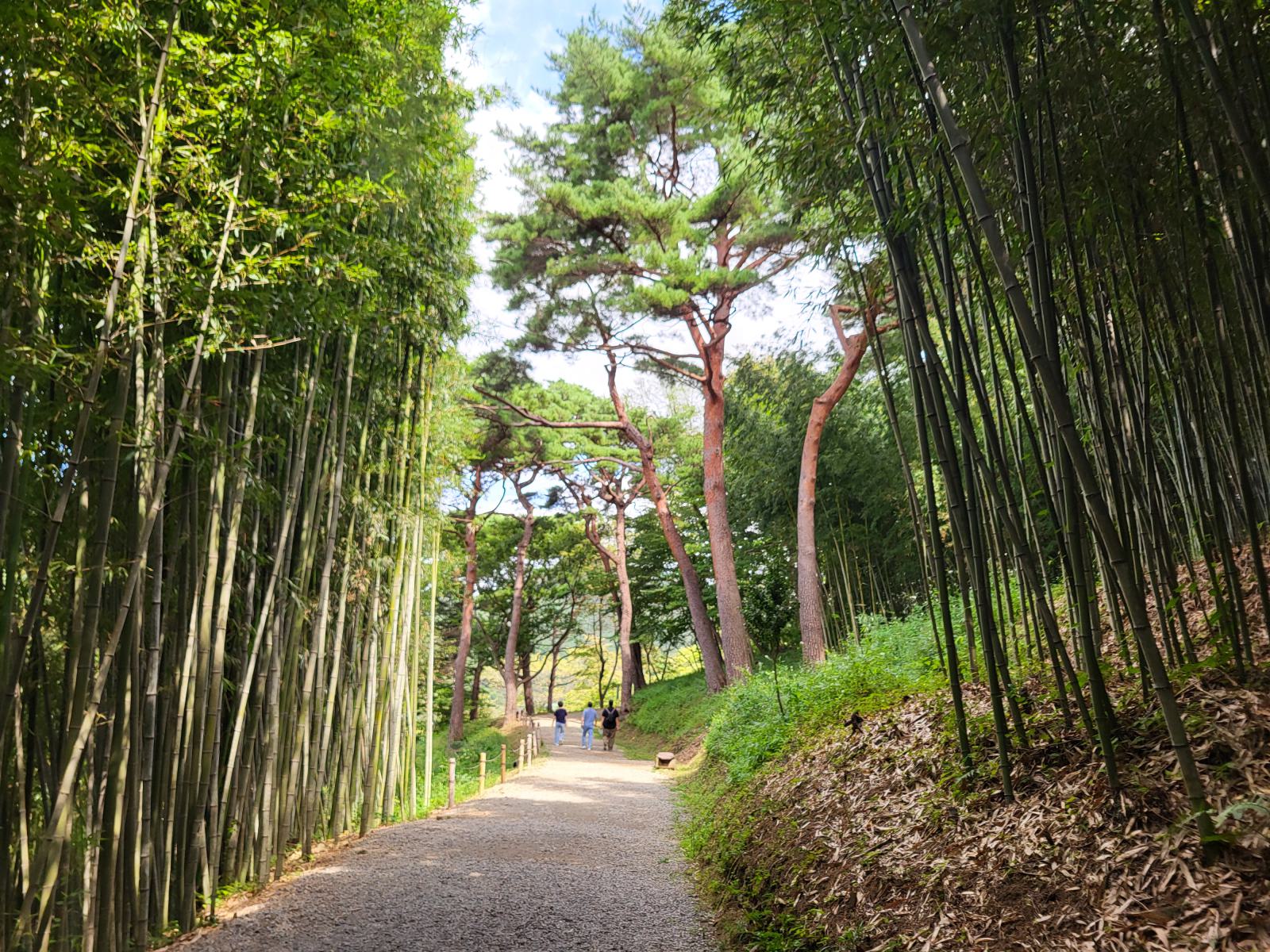 Die Abreise aus Busan fiel uns schwer. Am Busbahnhof schlossen wir erstmal unser Gepäck ein, zu einem Ticketkauf konnten wir uns auch noch nicht durchringen. 20 Minuten außerhalb liegt ein großer, seit 400 Jahren unberührter Bambuswald, Ahopsan Forest. Nur noch den Wald besuchen, dann fahren wir wirklich weiter. Mit dem Taxi fuhren wir in die Berge, durch kleine Dörfer zwischen leuchtend grünen Reisfeldern.