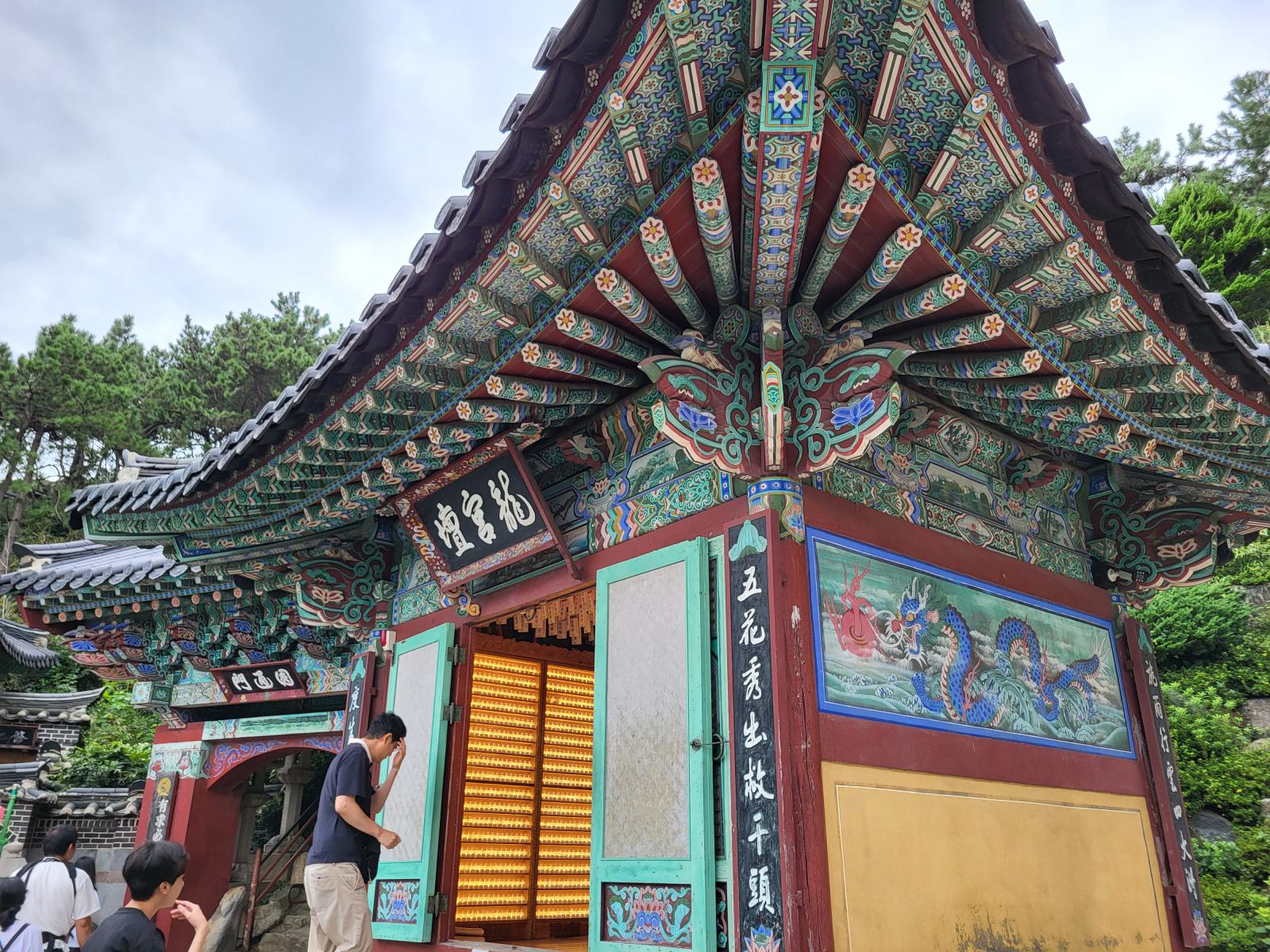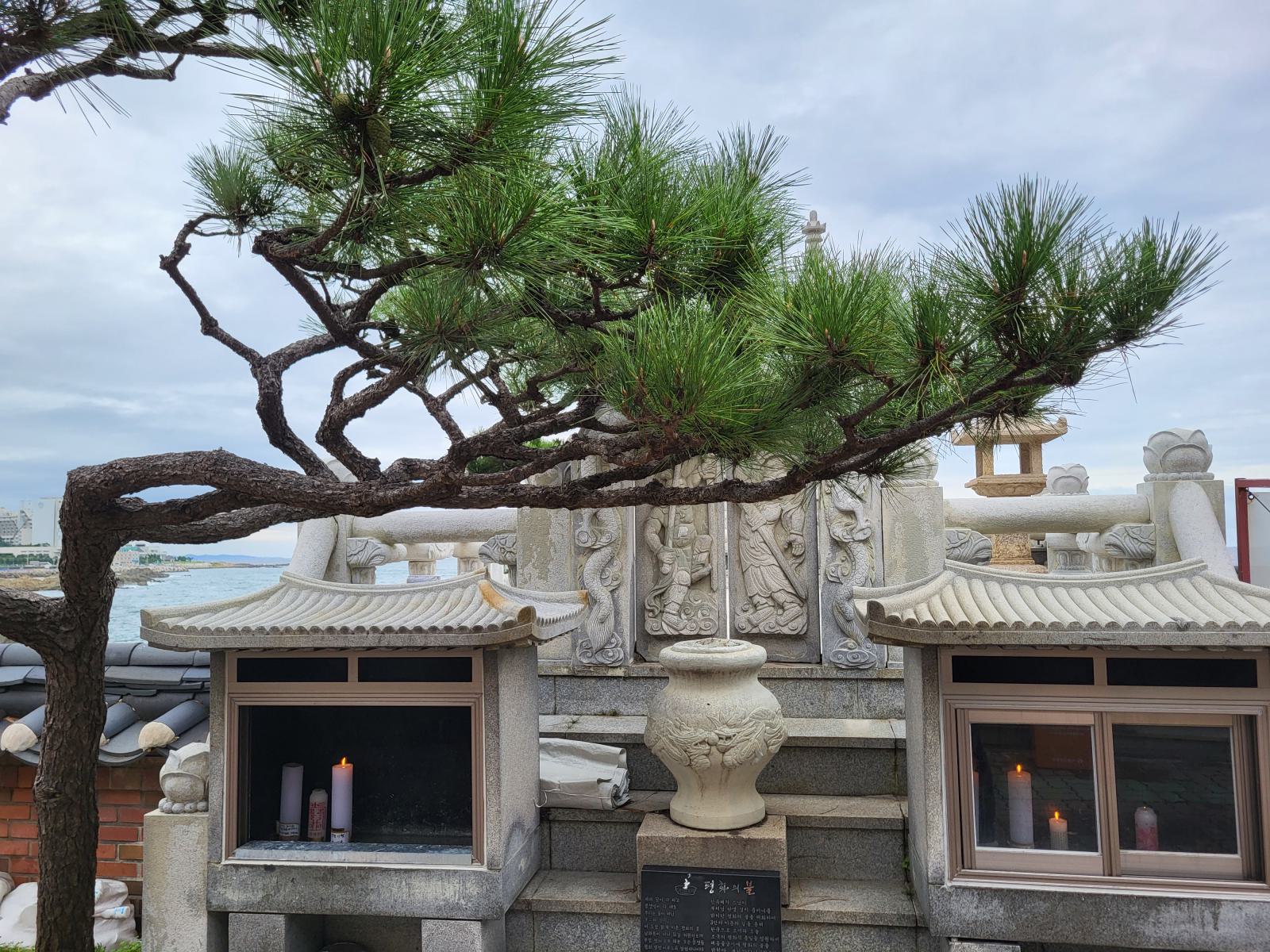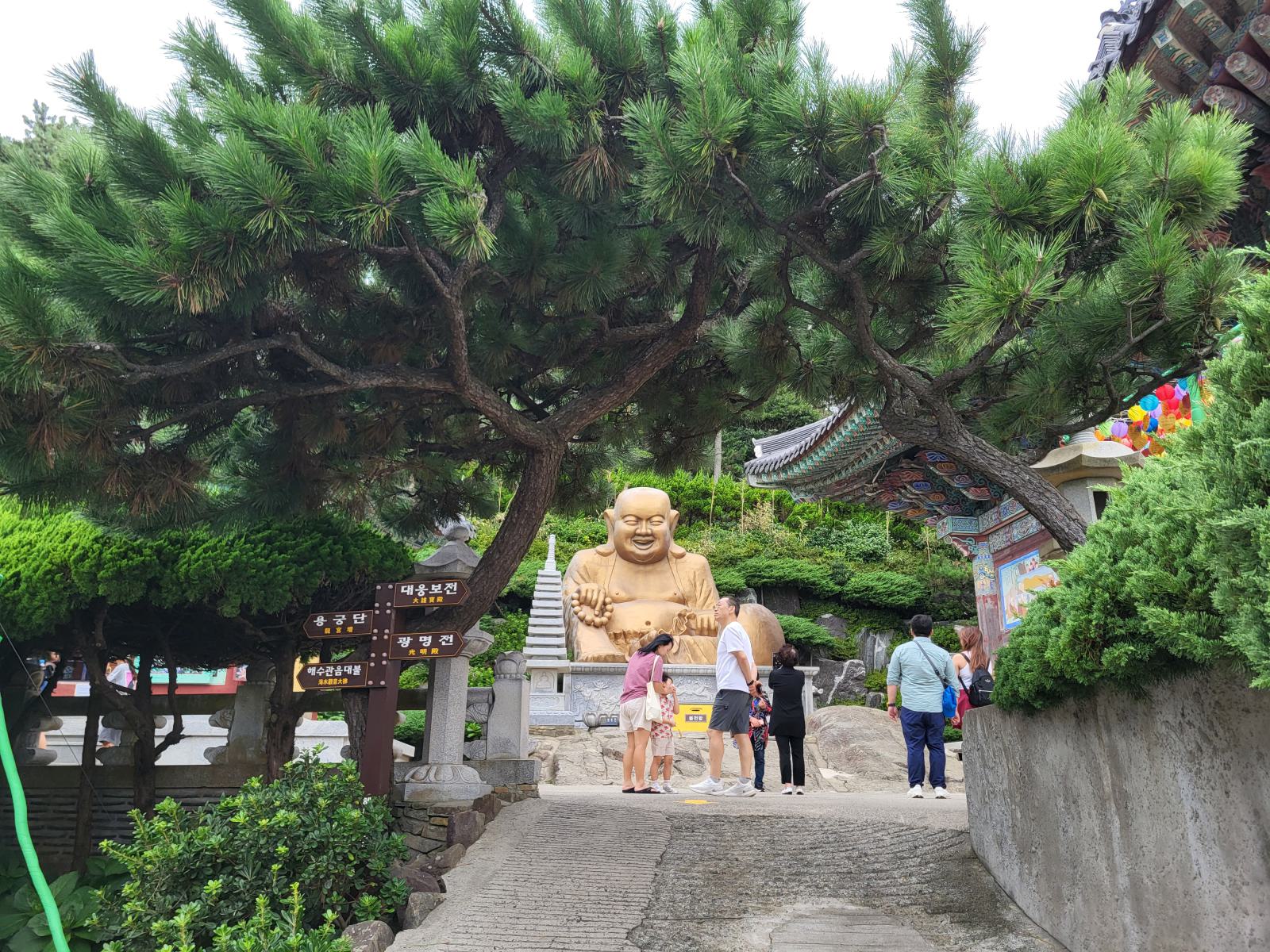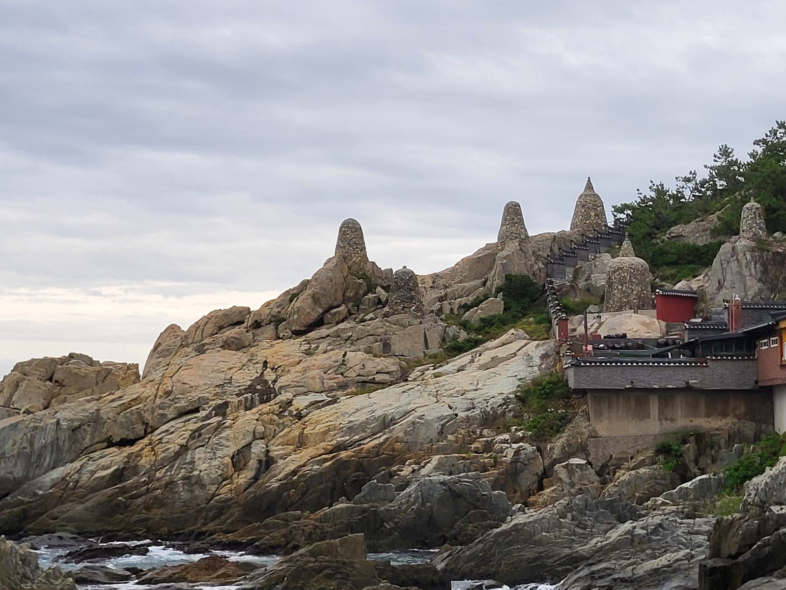 Busans Hauptsehenswürdigkeit ist vermutlich der Haedong Yonggungsa Tempel in Haehundae, am anderen Ende der Stadt. Mit dem Taxi waren wir eine Stunde unterwegs, die Wege in dieser Stadt sind weit. Der Tempel schmückt sich mit dem Titel, der schönste des Landes zu sein, die Touristenmassen kassieren allerdings die komplette Atmosphäre. Schön ist er trotzdem, besonders von den benachbarten Felsen aus betrachtet, wie er sich in die schroffe Landschaft klammert und den Wellen trotzt.