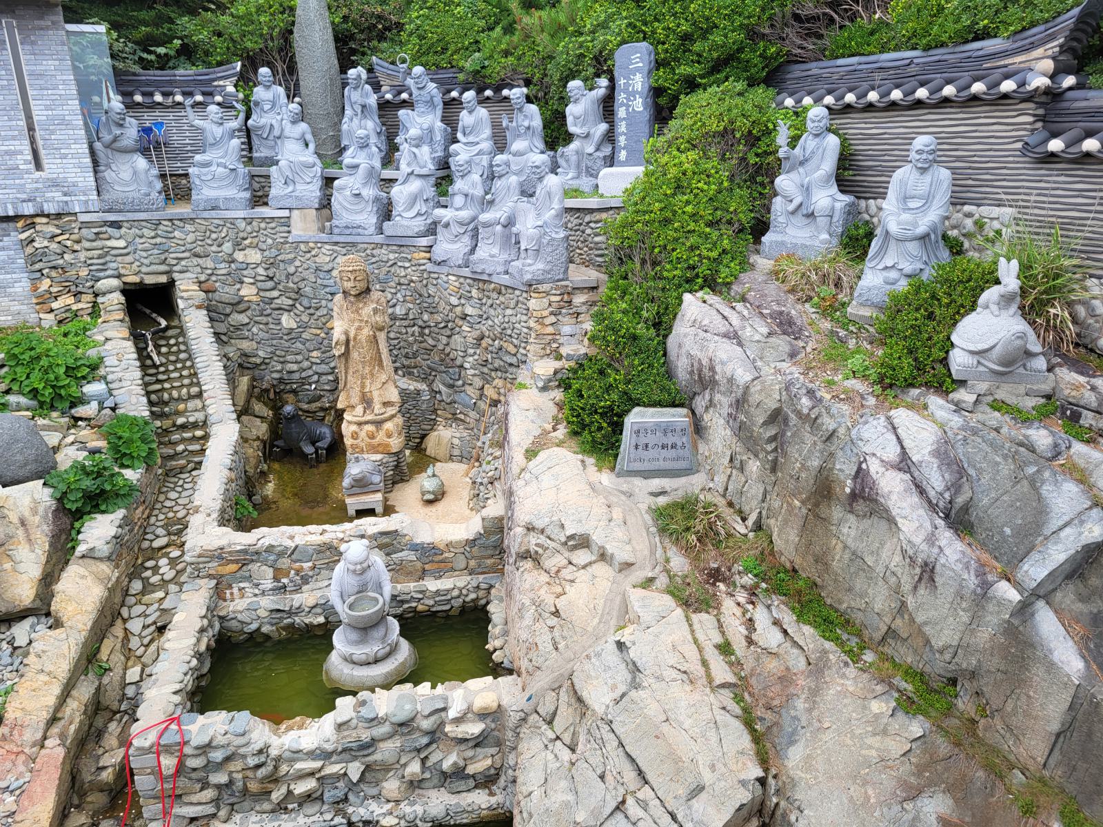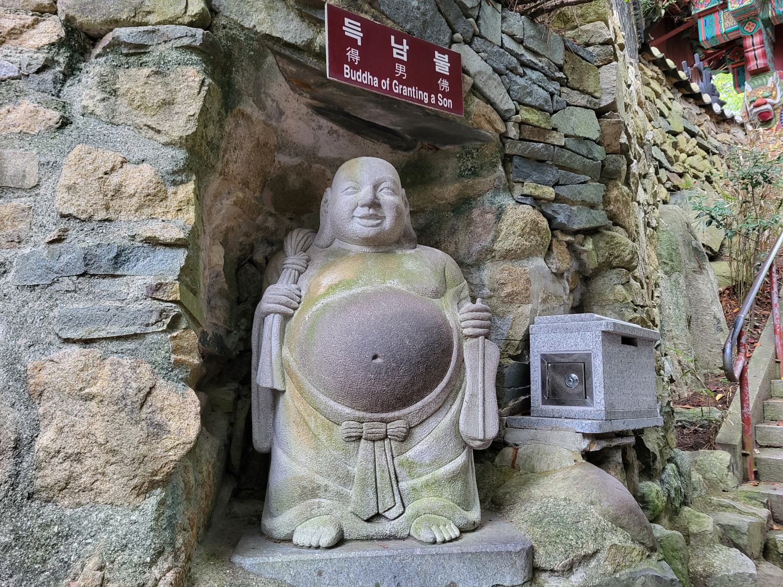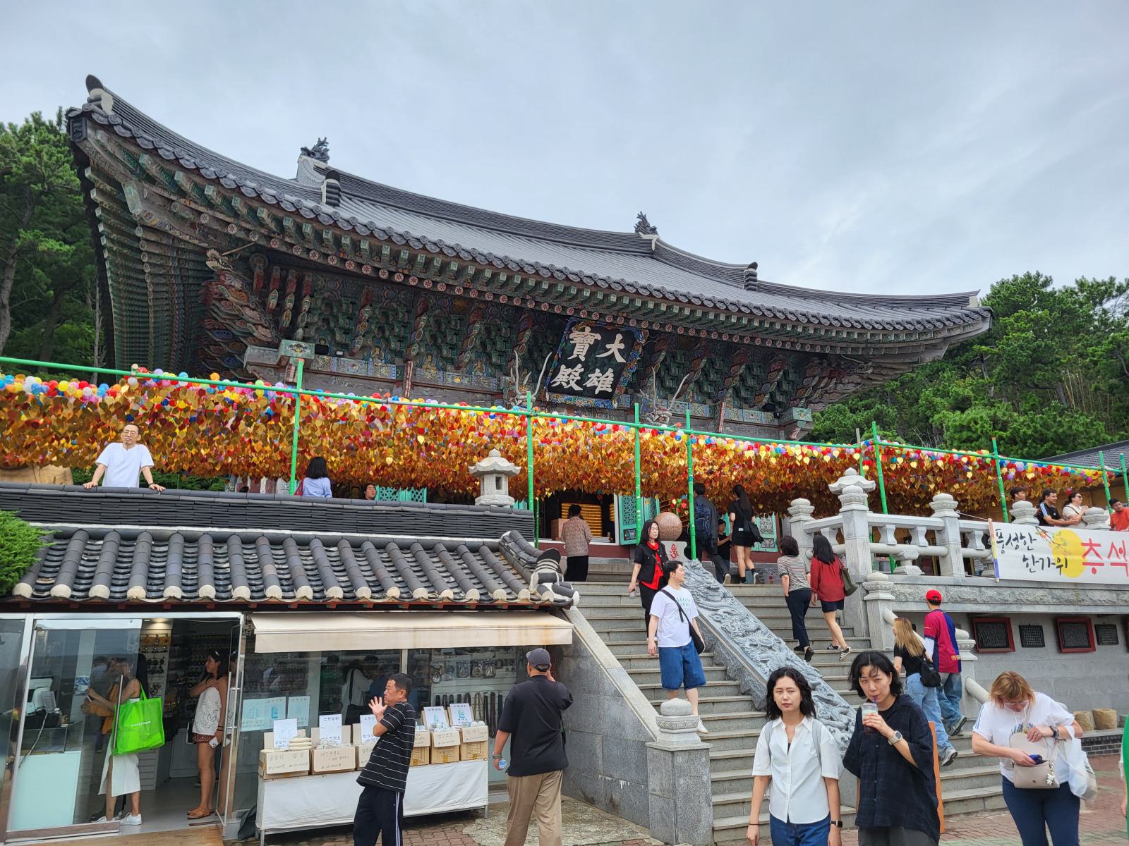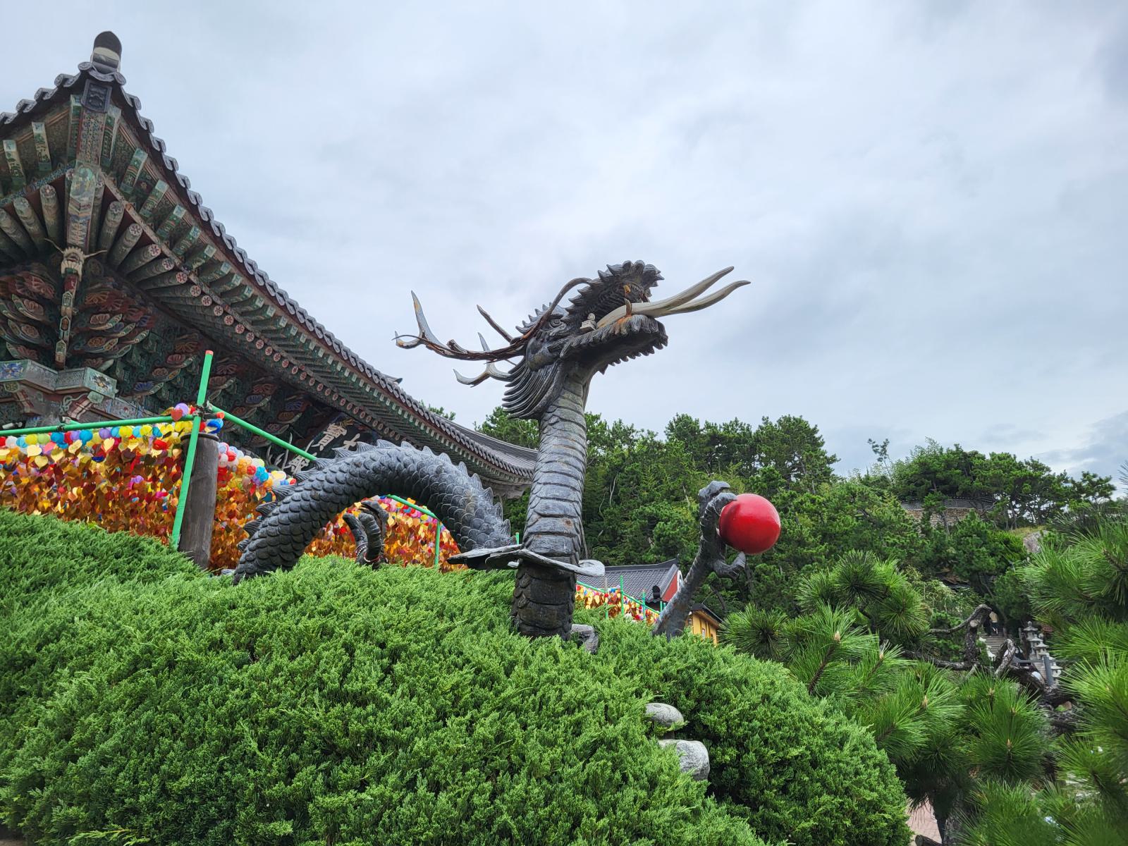 Busans Hauptsehenswürdigkeit ist vermutlich der Haedong Yonggungsa Tempel in Haehundae, am anderen Ende der Stadt. Mit dem Taxi waren wir eine Stunde unterwegs, die Wege in dieser Stadt sind weit. Der Tempel schmückt sich mit dem Titel, der schönste des Landes zu sein, die Touristenmassen kassieren allerdings die komplette Atmosphäre. Schön ist er trotzdem, besonders von den benachbarten Felsen aus betrachtet, wie er sich in die schroffe Landschaft klammert und den Wellen trotzt.