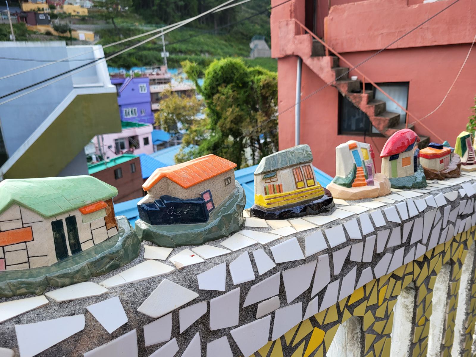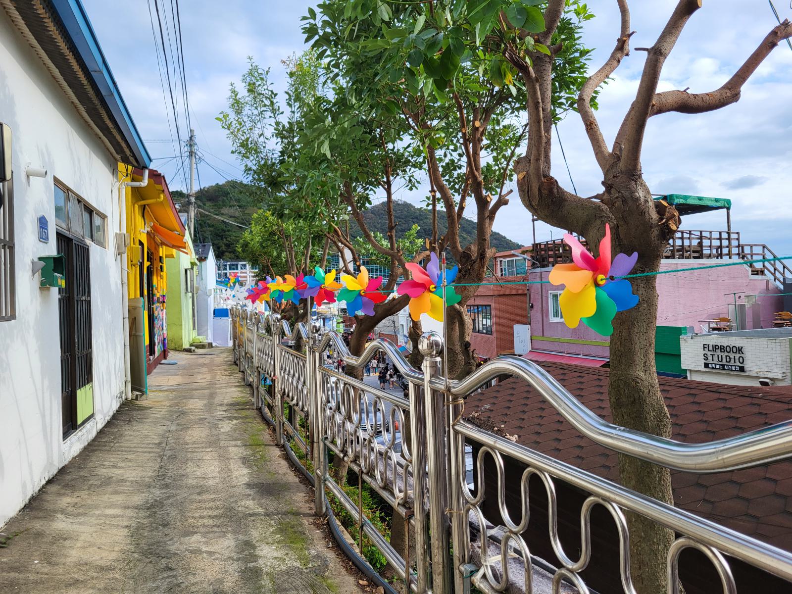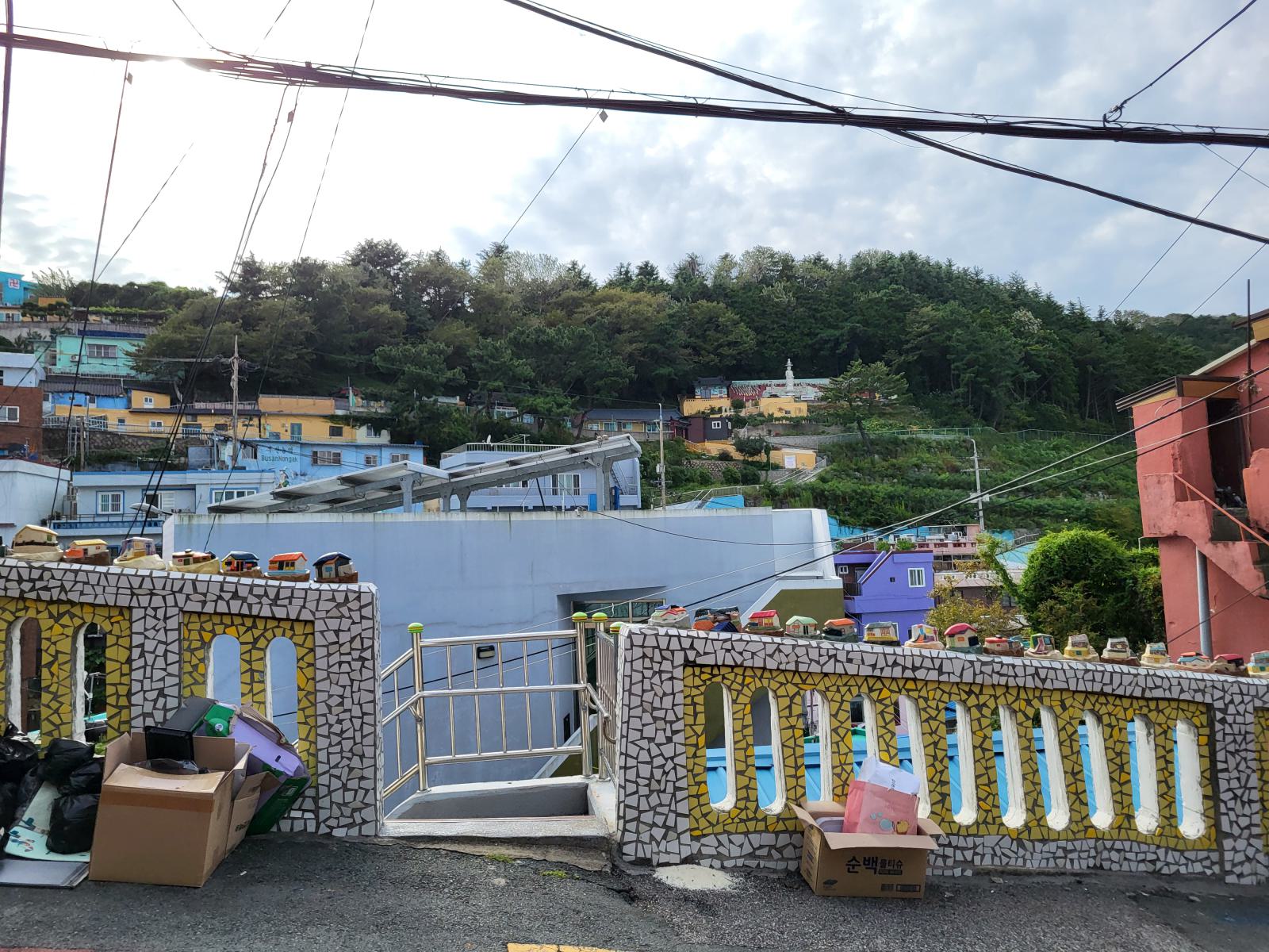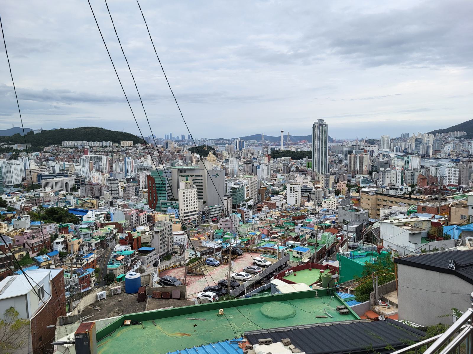 Zeit für einen kalten Kaffee, wir bestellten uns Gebäck mit roter Bohne dazu und setzten uns ins Fenster mit Blick auf Meer und Tempel und überlegten, was wir mit dem Rest des Tages anfangen wollten. Ganz in der Nähe liegt der Blueline Park, aber es gab gar keine Tickets mehr. Wir kauften schnell welche für morgen und fuhren zurück nach Süden, wir hatten ja noch Pläne von gestern, Gamcheon Village. Rückblickend muss man sagen, das ging so weiter in Busan, immer mit etwas Verzug. Die Wege in der Stadt sind einfach weit und die Möglichkeiten für einen guten Tag scheinbar unendlich. So langsam bekammen wir eine Idee davon, warum Busan so polarisiert. Hat man Zeit, ist es wunderschön, hat man keine, kann man eigentlich auch gleich wieder abreisen.