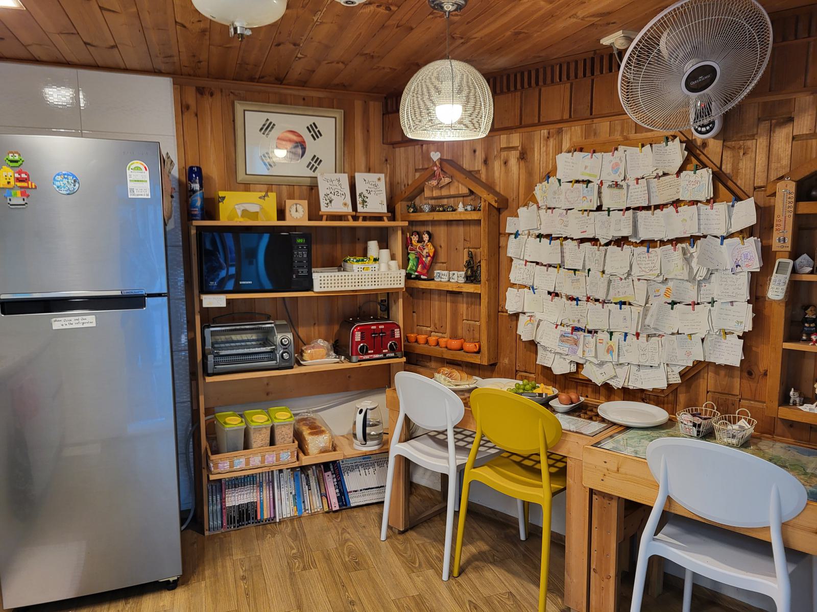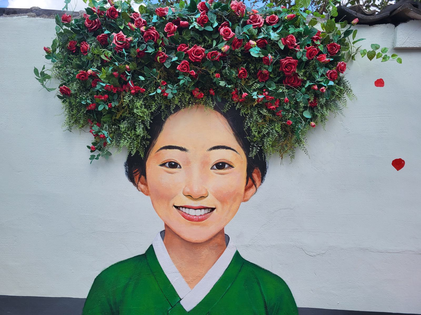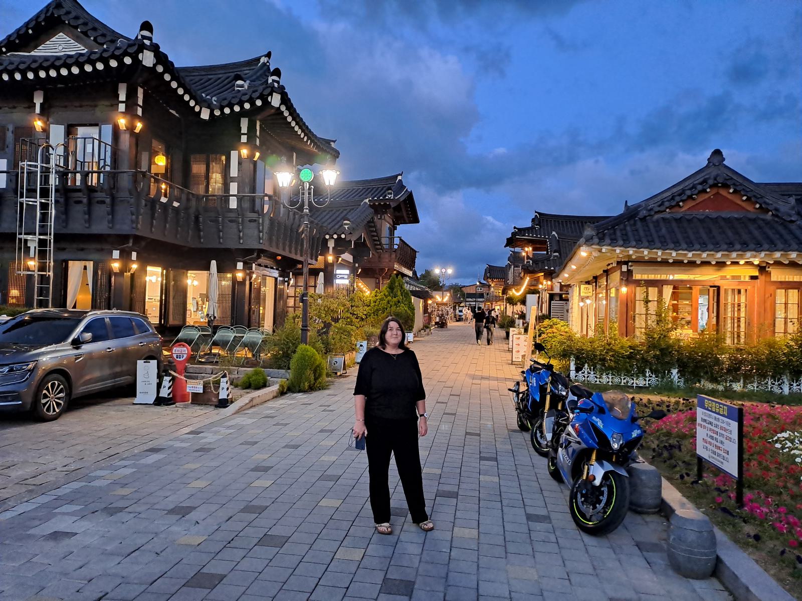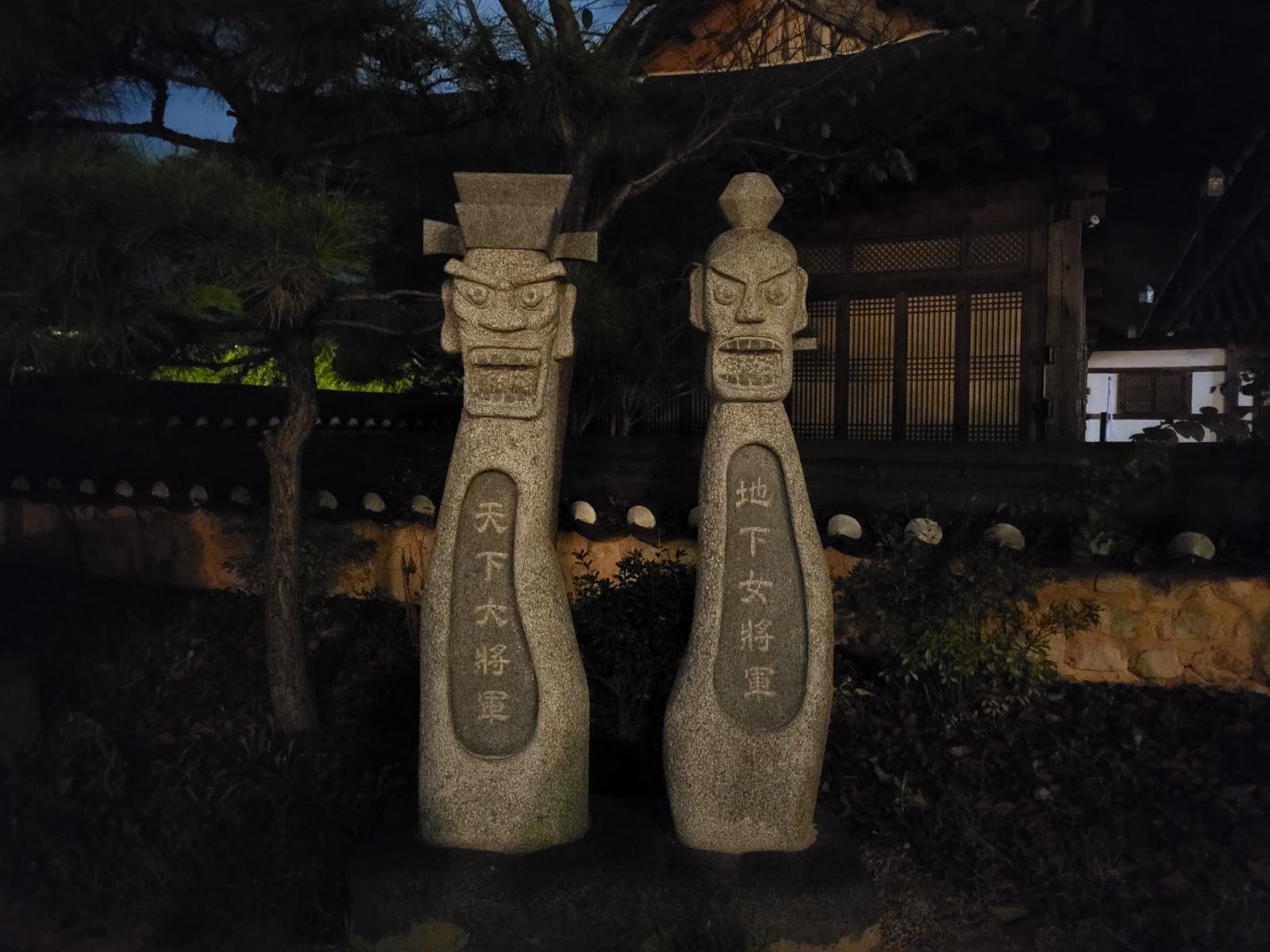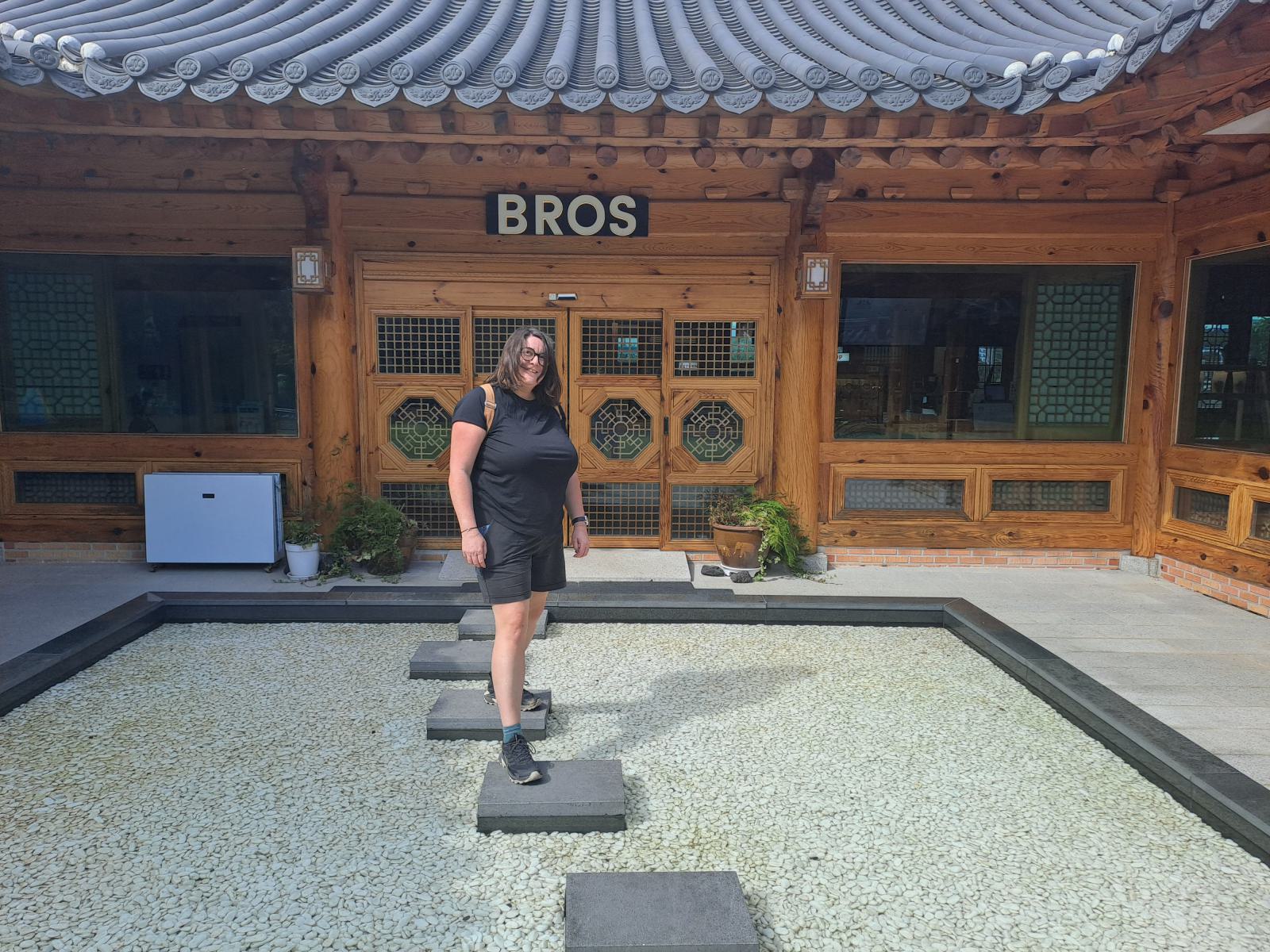 Gyeongju ist eher ländlich, und besteht neben dem Hotel- und Busparkplatzviertel und der kleinen Innenstadt hauptsächlich aus Hanoks, den traditionellen Einfamilienhäusern. Unseres lag etwas versteckt in einer Sackgasse, mit einem wunderschönen Garten. Im Nachbarzimmer wohnte eine koreanische Familie auf einem Wochenendausflug. Wenn wir draußen saßen, schlichen die Kinder neugierig um uns herum und übersetzten uns zusammen mit der Mutter die Waschmaschine. Später schenkten sie uns leckeres regionales Gebäck mit Käsekuchenfüllung. Die koreanische Gastfreundschaft gilt also auch, wenn man selbst Gast ist.