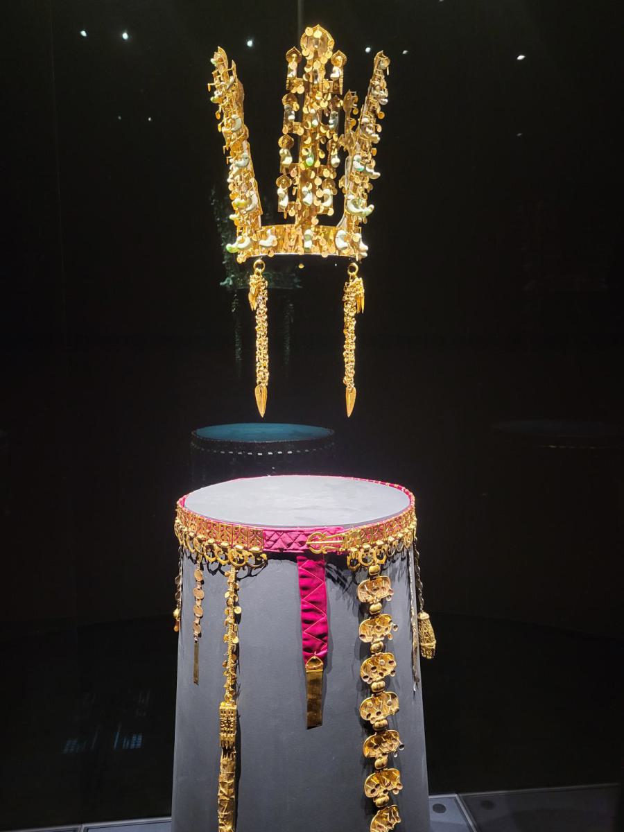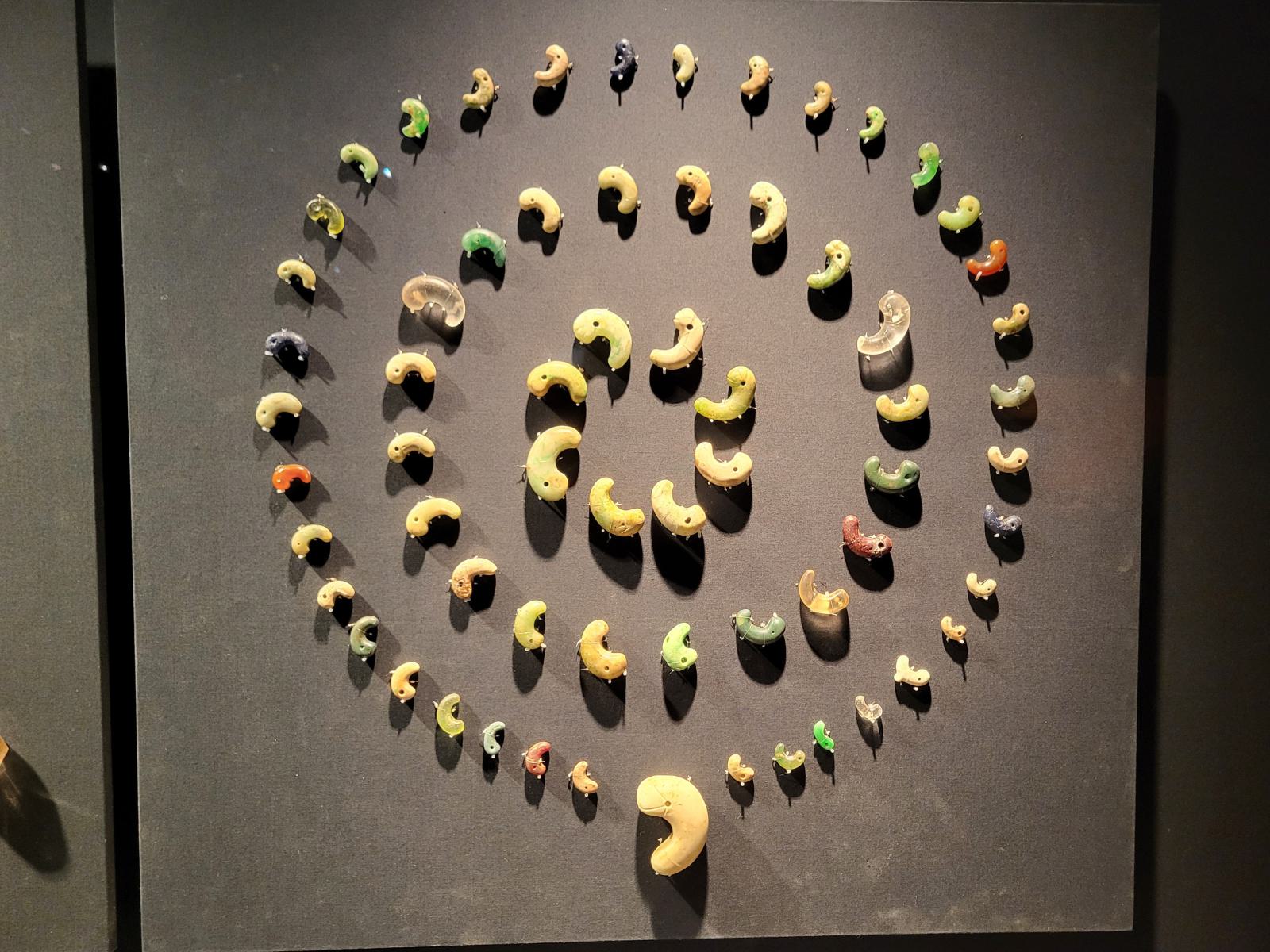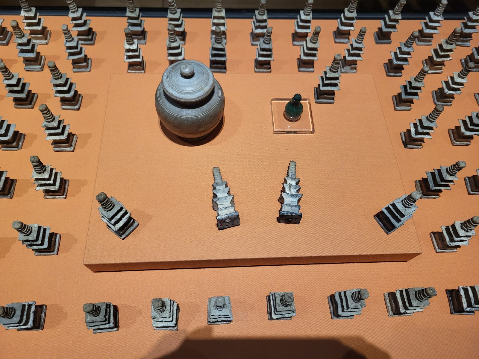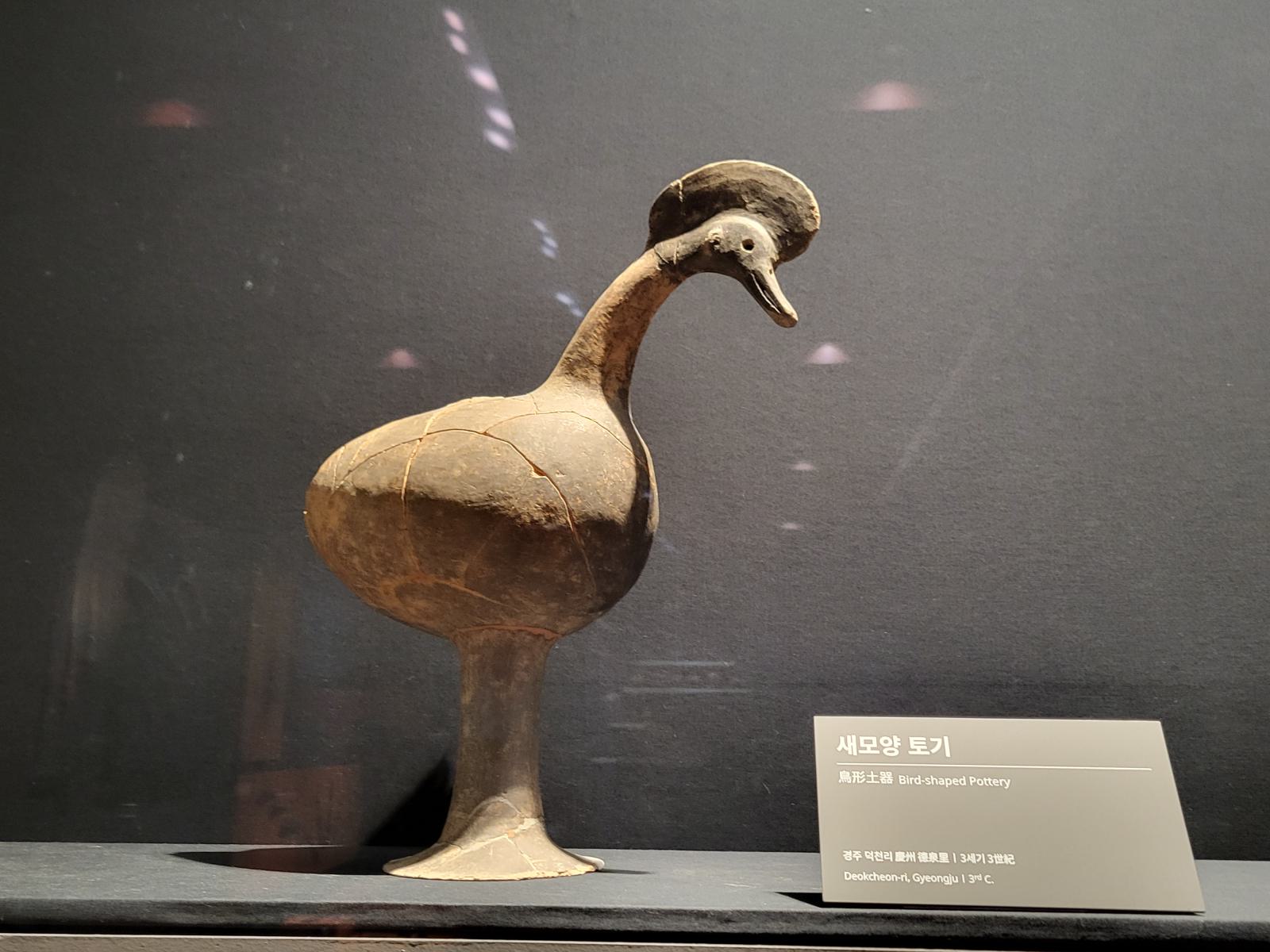 Dann kamen wir zu den wahnsinnig eindrucksvollen Grabbeigaben, goldene Kronen und Schuhe, allerlei Schmuck, Figuren und Lampen. Über die tausend Jahre kam davon eine Menge zusammen. Durchweg beliebt war das Entenmotiv, das einem Pferd ähnelte. Außerdem gab es ein paar exotische Beigaben, die über die Seidenstraße gekommen waren, darunter hauptsächlich Glas aus Europa.