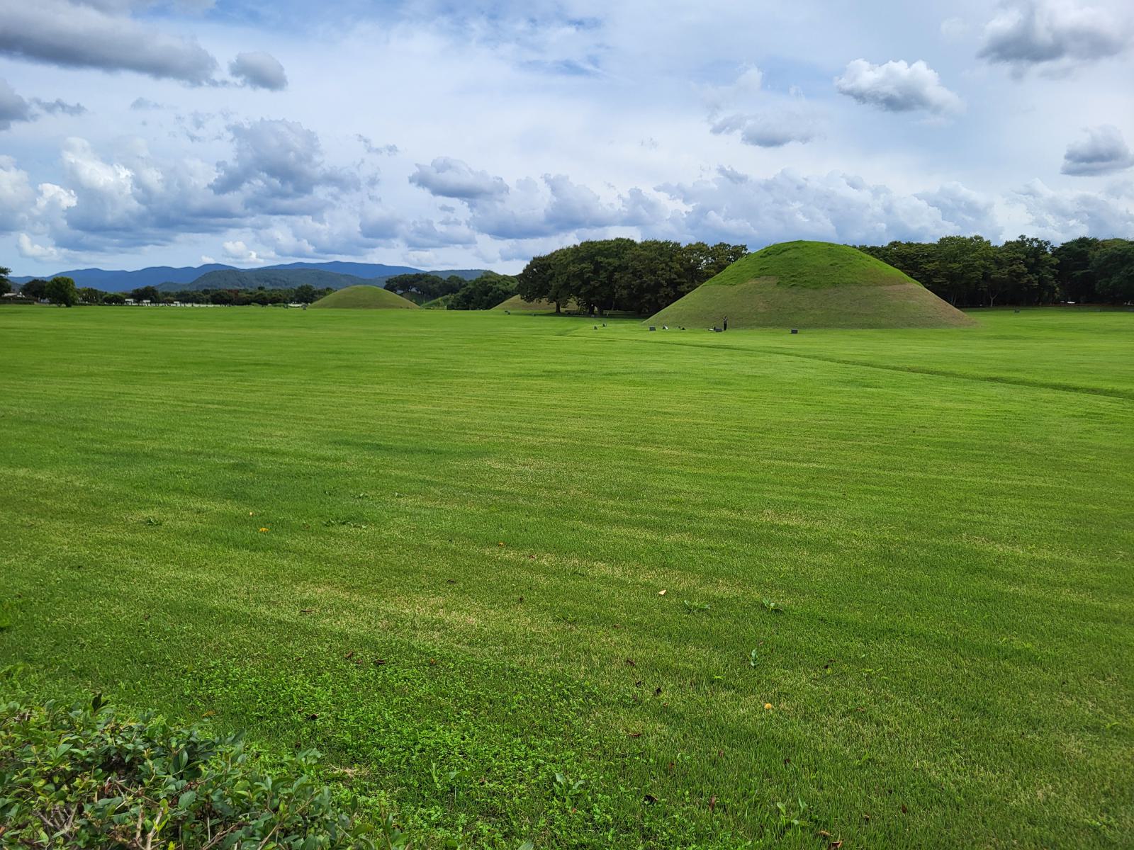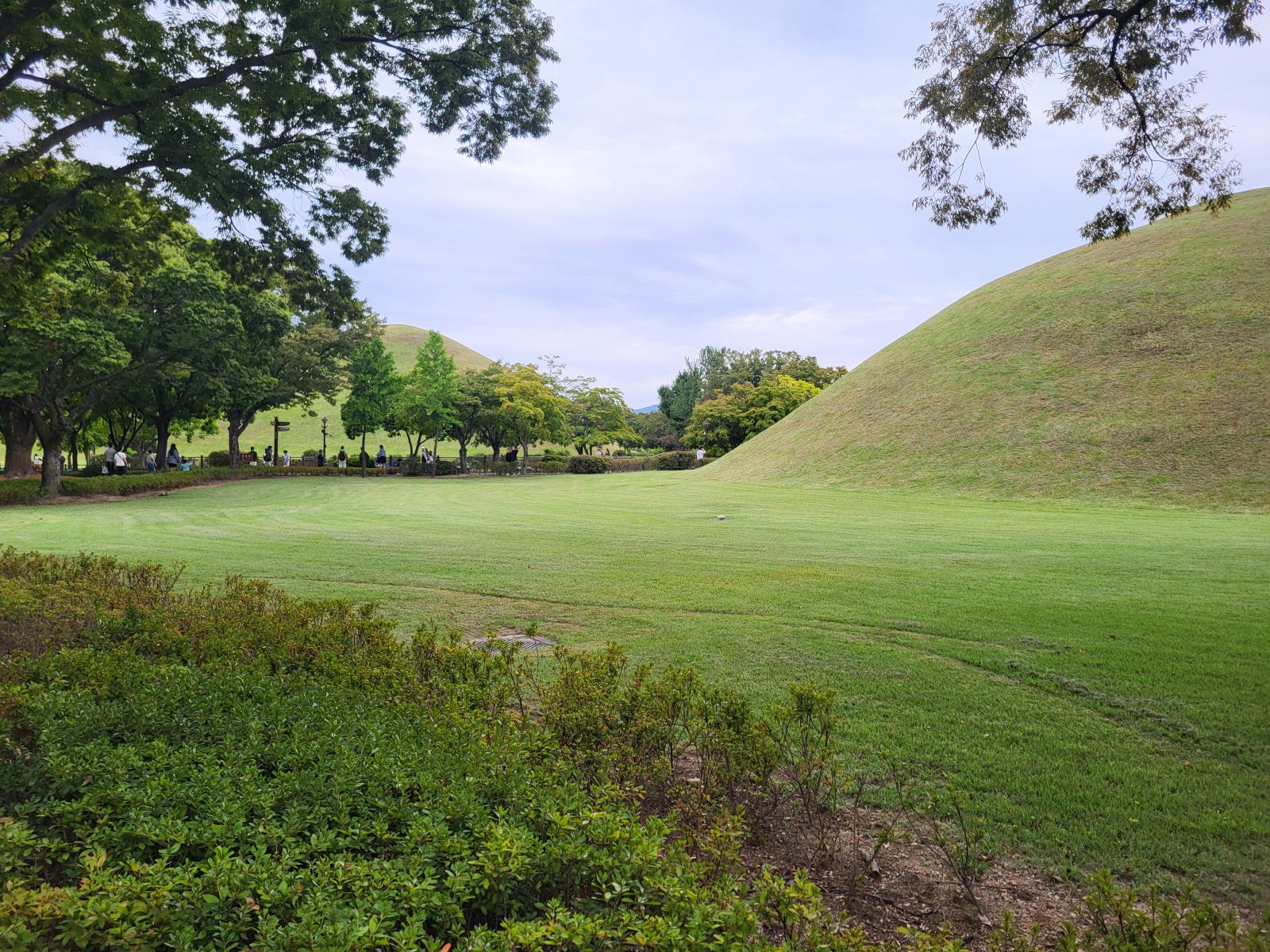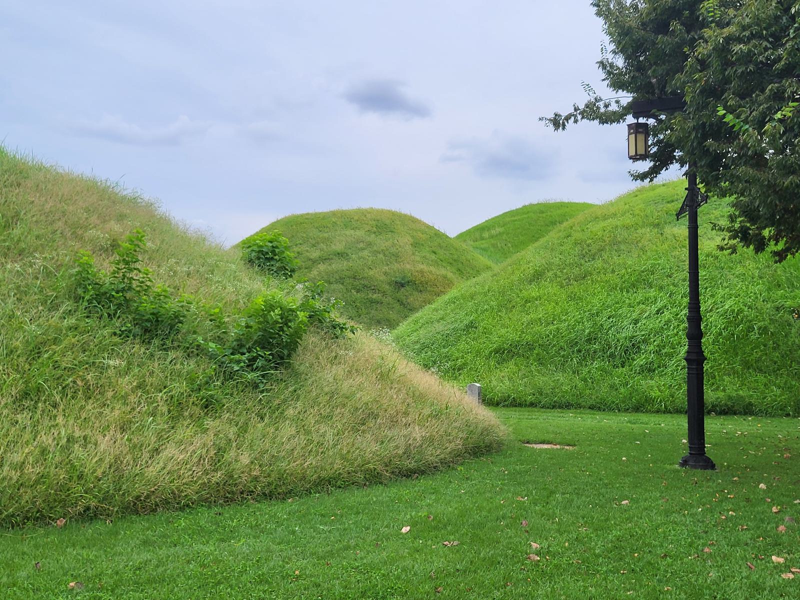 Das erste Gräberfeld beginnt schon nahe unserer Wohnung und sieht aus wie ein Golfplatz für Riesen. Spannender wird es im Cheomseongdae Park. Außer noch mehr Gräbern liegt hier der namensgebende Turm. Aus 366 Steinen erbaut, wird vermutet, dass es sich um ein astronomisches Observatorium handelt. Hinter dem Turm liegt der Hahnenwald, mit alten knorrigen Bäumen und einem Glockenturm und dahinter ein Wall der alten Stadtbefestigung.