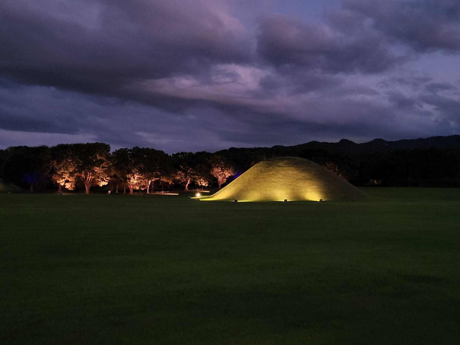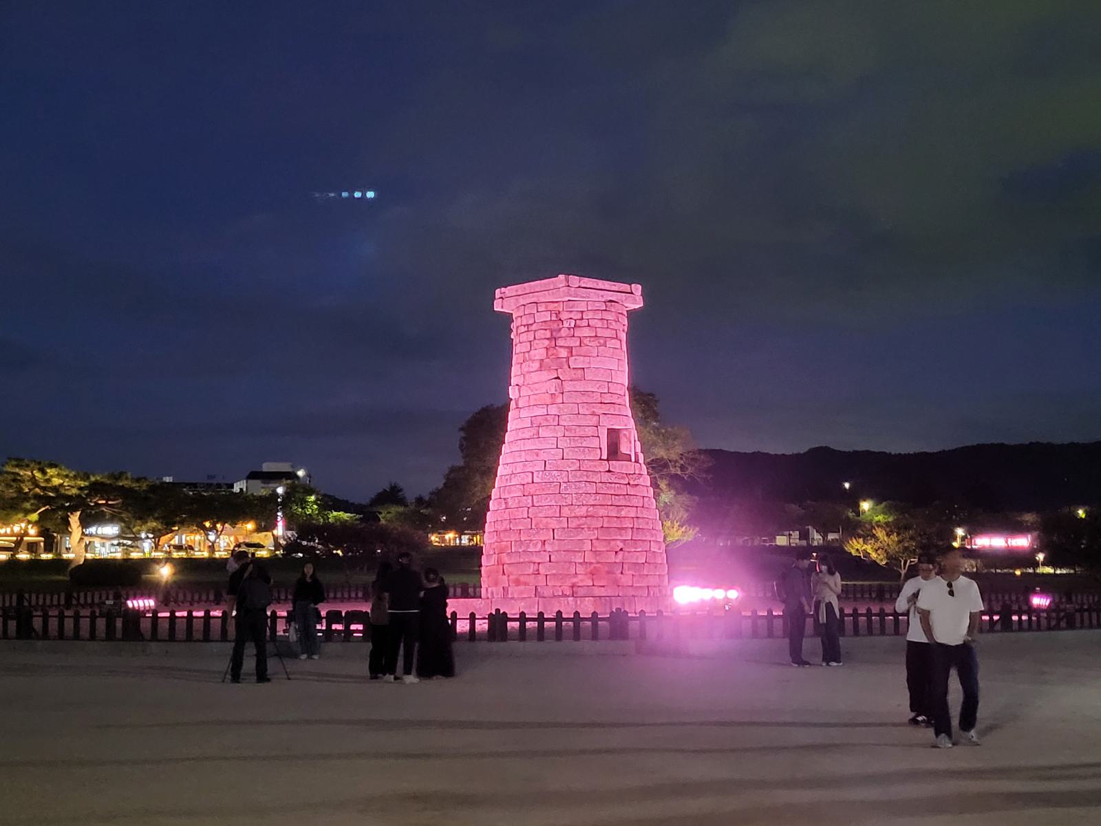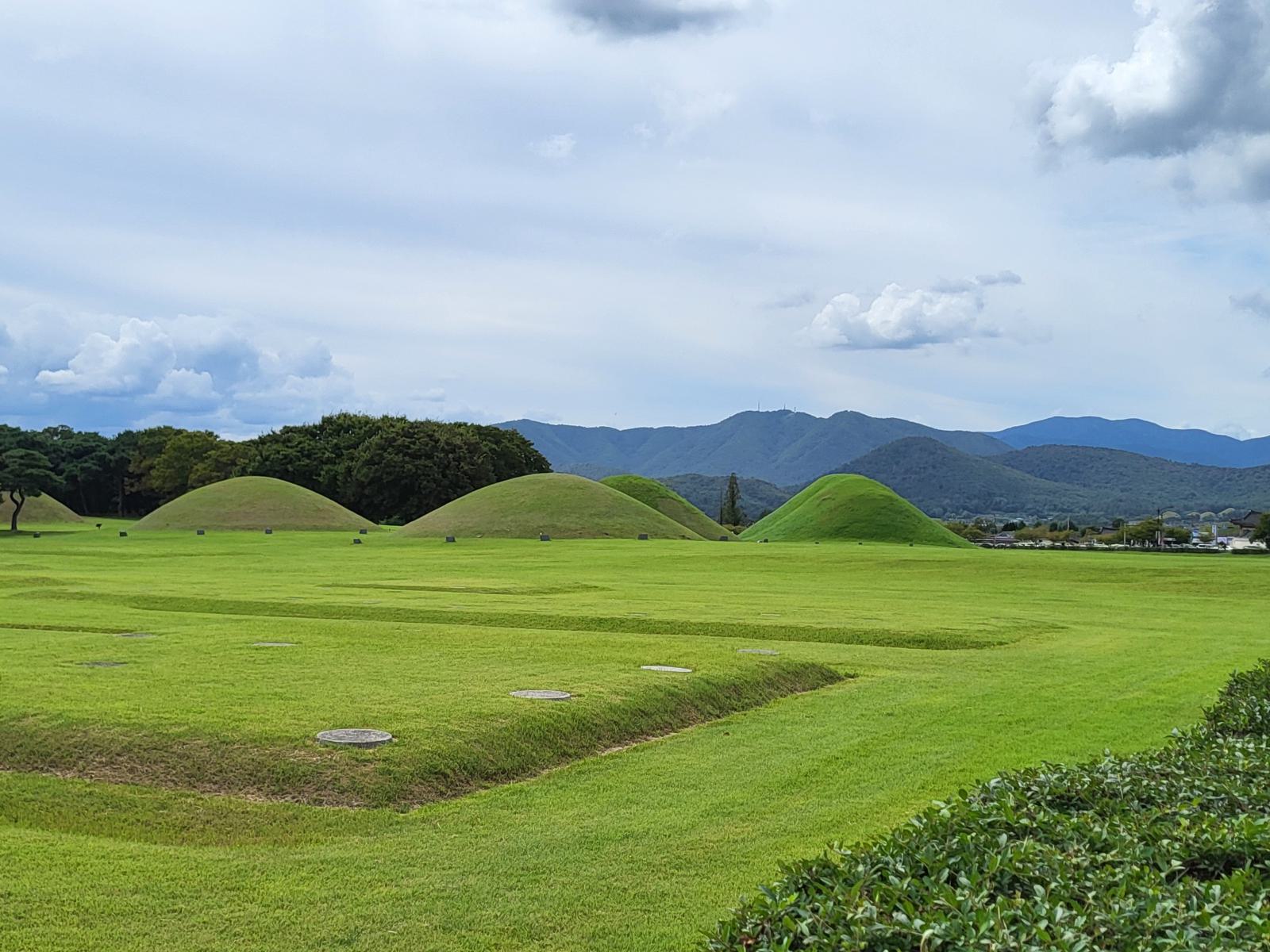 Das erste Gräberfeld beginnt schon nahe unserer Wohnung und sieht aus wie ein Golfplatz für Riesen. Spannender wird es im Cheomseongdae Park. Außer noch mehr Gräbern liegt hier der namensgebende Turm. Aus 366 Steinen erbaut, wird vermutet, dass es sich um ein astronomisches Observatorium handelt. Hinter dem Turm liegt der Hahnenwald, mit alten knorrigen Bäumen und einem Glockenturm und dahinter ein Wall der alten Stadtbefestigung.