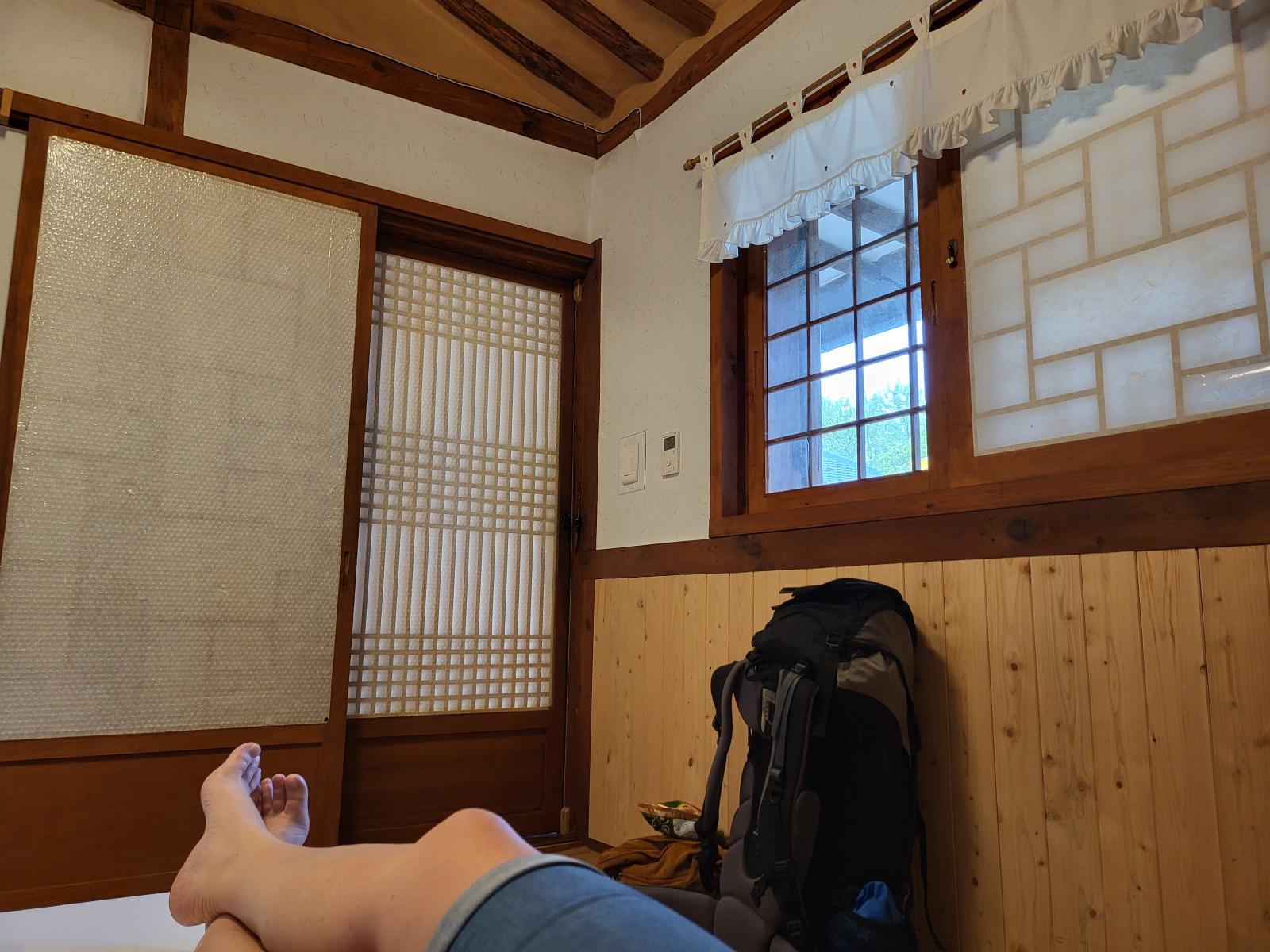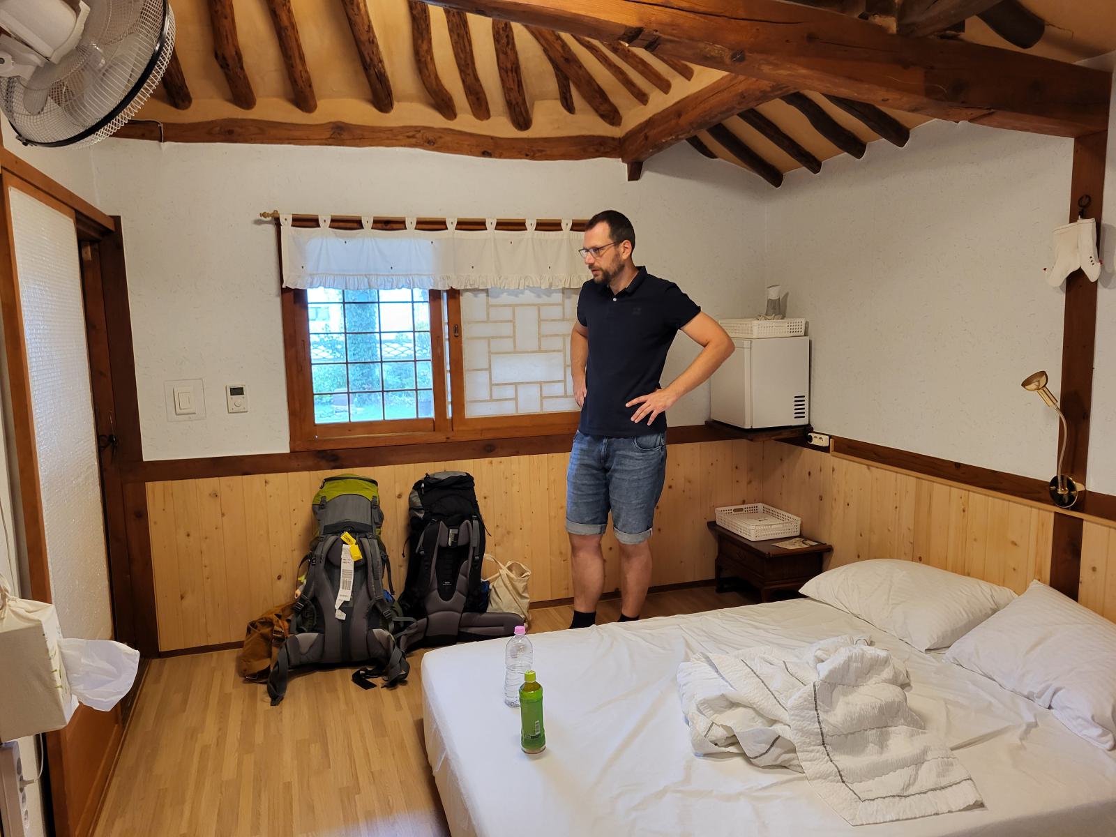In unser Zimmer passten gerade zwei große Matratzen, ein Komfortunterschied zum Bett ist das nicht, weil die koreanischen Betten statt Federkern oder Lattenrost sowieso einfach den Fußboden nachahmen und aus Brettern bestehen. Drin wie draußen war es hier jedenfalls wahnsinnig gemütlich.