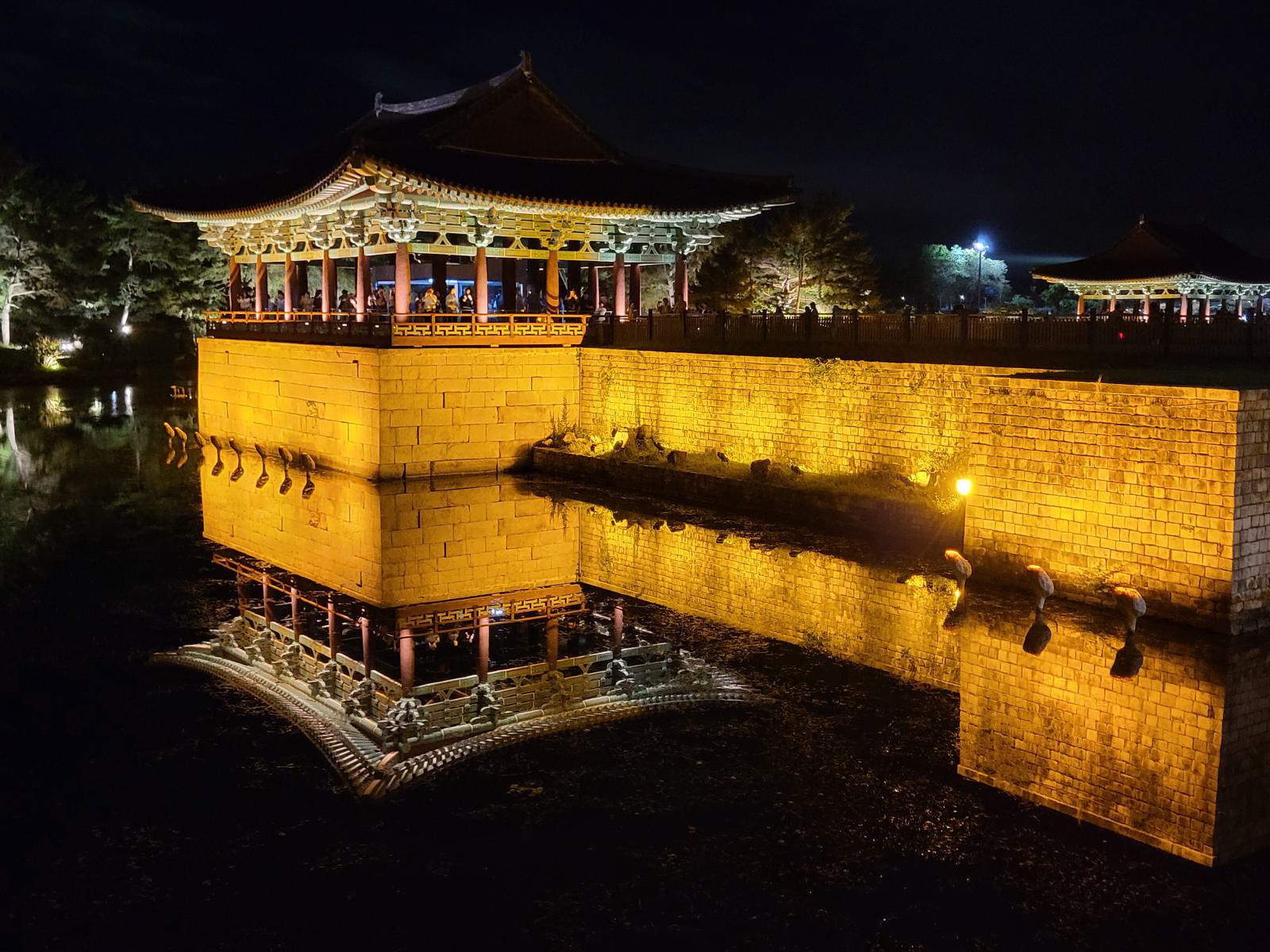 An der Brücke beginnt das Freilichtmuseum von Gyeongju und wir schlenderten noch etwas durch dessen stimmungsvolle, dunkle Gassen.