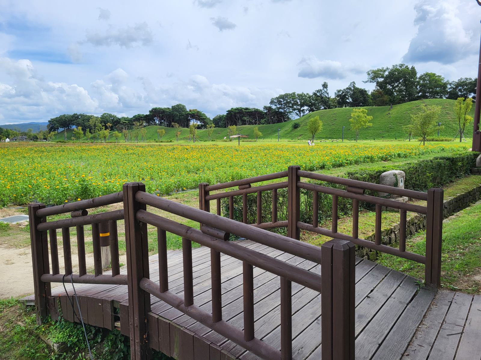 Am Morgen liefen wir durch Chrysanthemenfelder zu den Sehenswürdigkeiten der Stadt. Gyeongju war fast tausend Jahre die Hauptstadt des Silla Königreichs und davon finden sich noch einige Zeugnisse. Überall in der Stadt verstreut liegen diese riesigen Hügelgräber unter sauberem grünen Rasen. Bis Anfang des letzten Jahrhunderts wurde kaum Notiz davon genommen und man hielt die Gegend einfach für hügelig, bis Kinder beim Spielen mit wertvollen Edelsteinen entdeckt wurden und die Grabschätze ans Licht kamen. Auf den Gräbern rum klettern kostet laut Warnschild 3 Jahre Gefängnis.