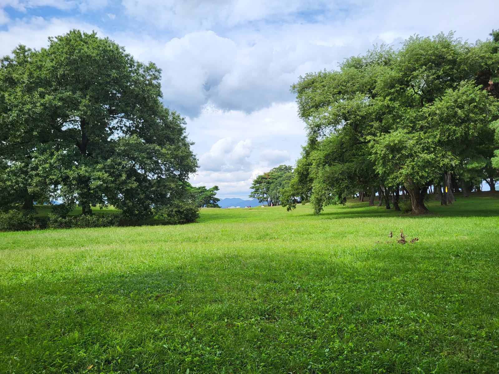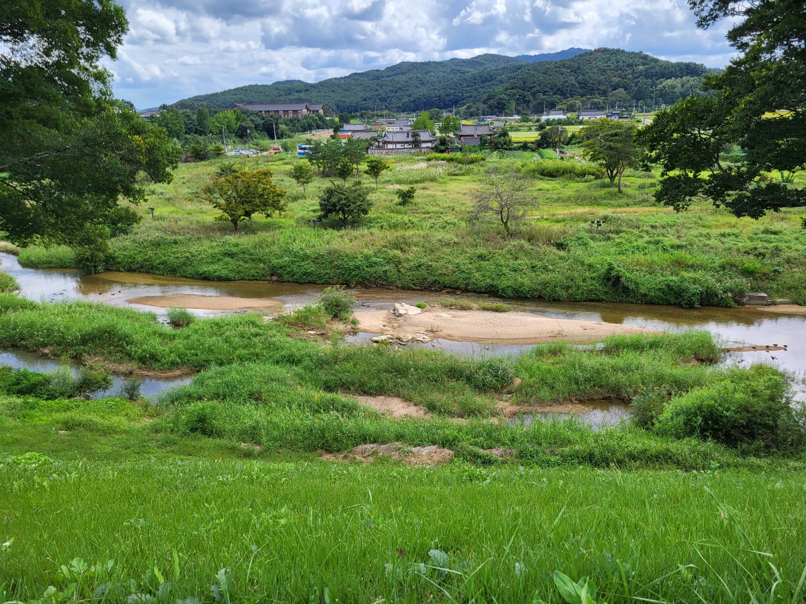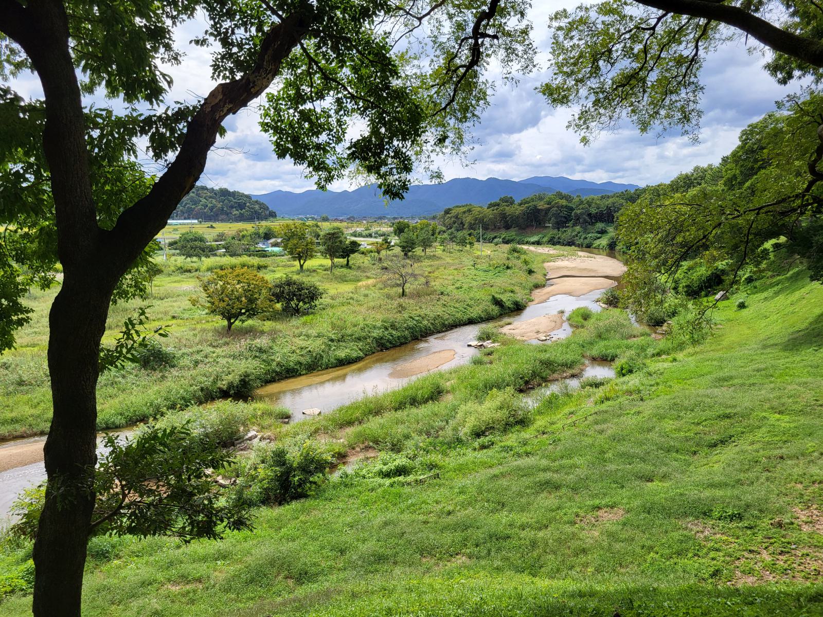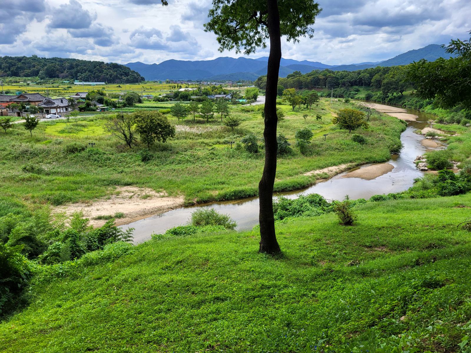 Wir vermuteten dort eine Abkürzung zum Nationalmuseum, wo wir uns die Grabschätze ansehen wollten. Aber am Weg war gerade eine Baustelle und so wurde aus der Abkürzung eine kleine Wanderung. Durch einen lichten Wald folgten wir einem Pfad zum Fluss, Einheimische saßen auf Bänken im Schatten und genossen die Aussicht oder sammelten Eicheln. Auf der anderen Flussseite erstrecken sich weite Felder, Wälder und Hügel. In der Landschaft verstreut liegen einzelne Bauernhöfe. Eine Aussicht wie aus dem Bilderbuch. Eine freie Bank verzögerte unsere Ankunft am Museum weiter.