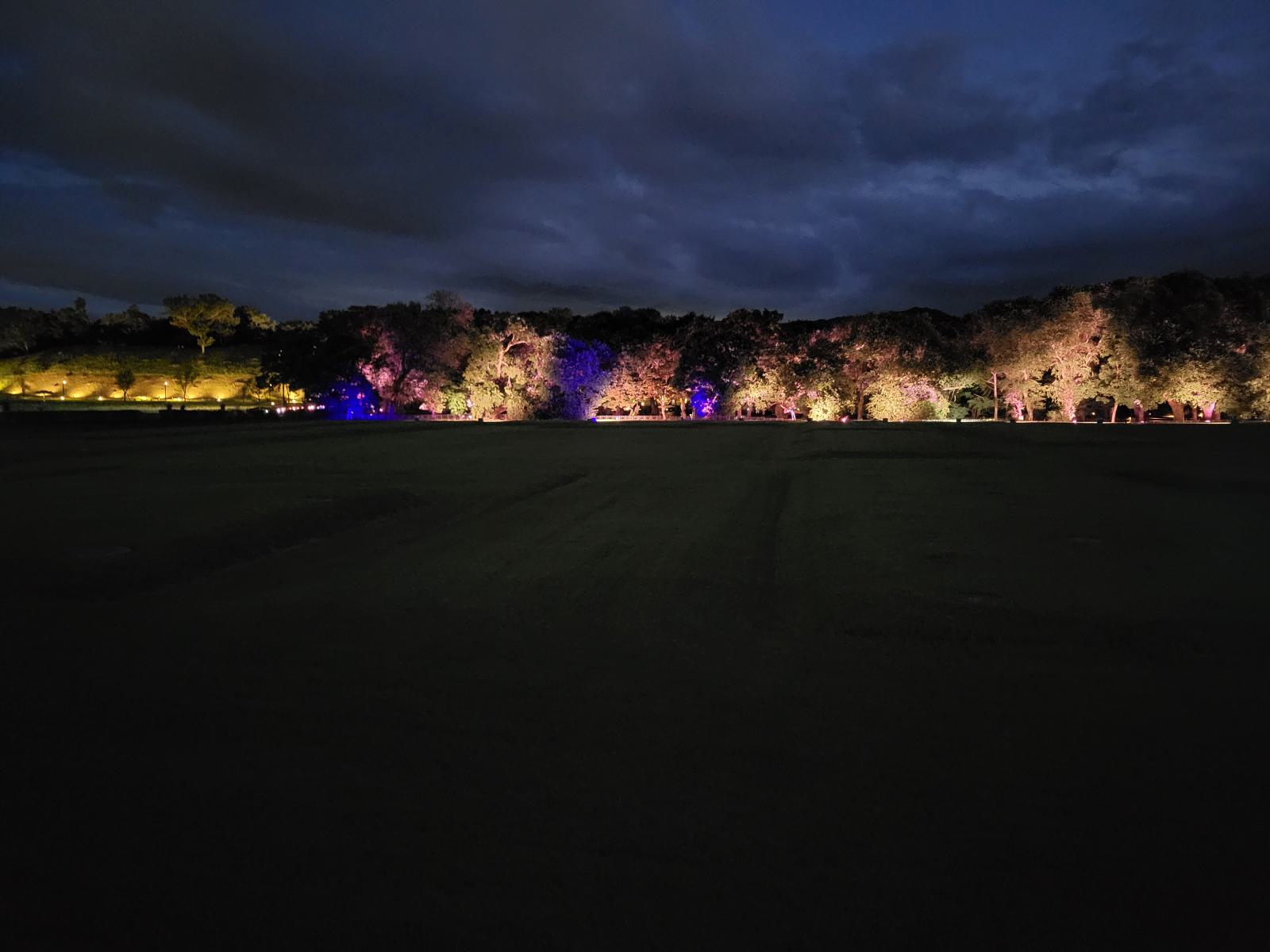 Der Astronomieturm und die Gräber sind im Dunkeln bunt beleuchtet und in den Wasserbecken, die zum Wall gehören quakten die Frösche. Der Weg zum Wolji Teich wird im Dunkeln von beleuchteten Mond- und Blumenistallationen gesäumt und im Hahnenwald schimmert es geheimnisvoll.