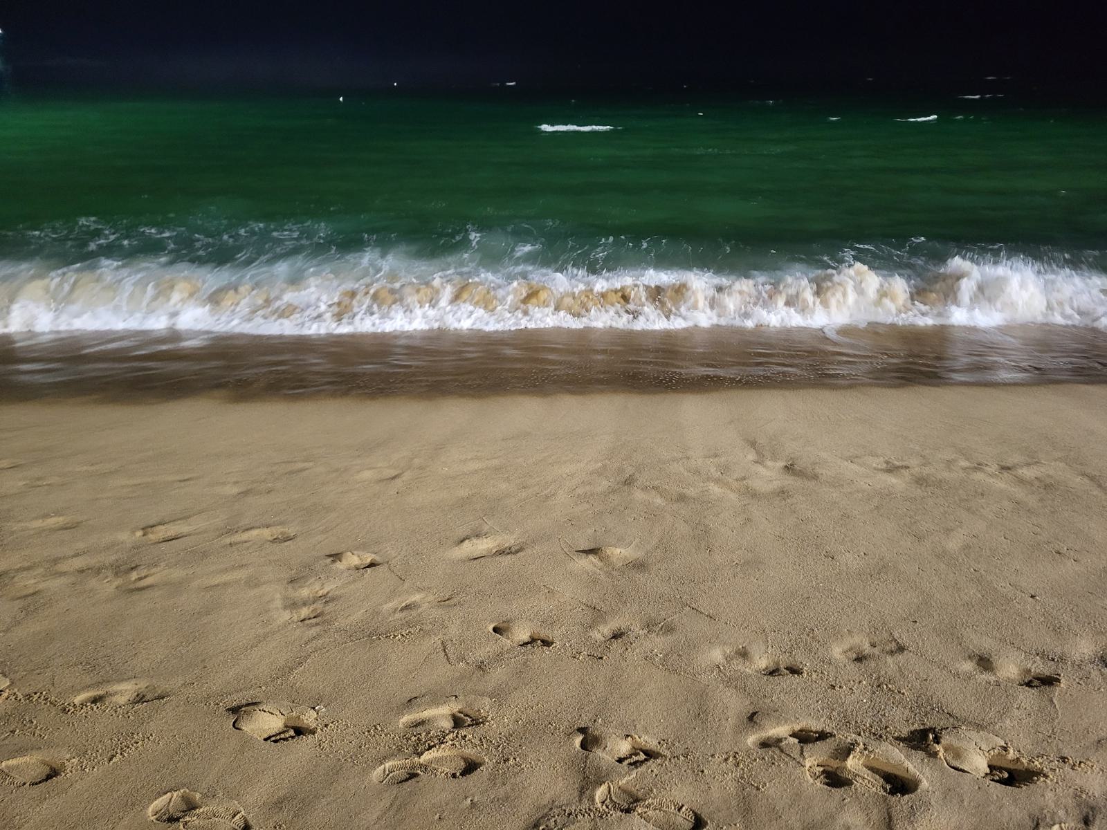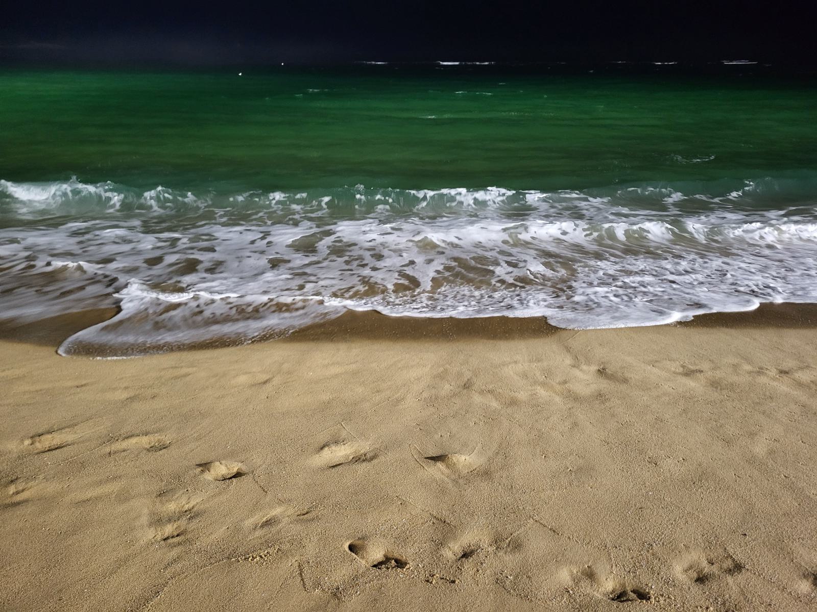 Wir ließen den Tag am Strand ausklingen, war ja auch der Strandtag. Jetzt passte die Polizei aber gut auf und das Meer war mit Flutlichtern ausgeleuchtet, eine ziemlich schöne Sicherheitsmaßnahme. Mit einem Bier setzten wir uns auf eine der Hollywoodschaukeln und schauten uns die grün leuchtenden Wellen an. Der Strand war auch am Abend gut besucht, viele Leute kamen zum Picknicken. In diesem Land geht scheinbar nichts ohne Essen.
