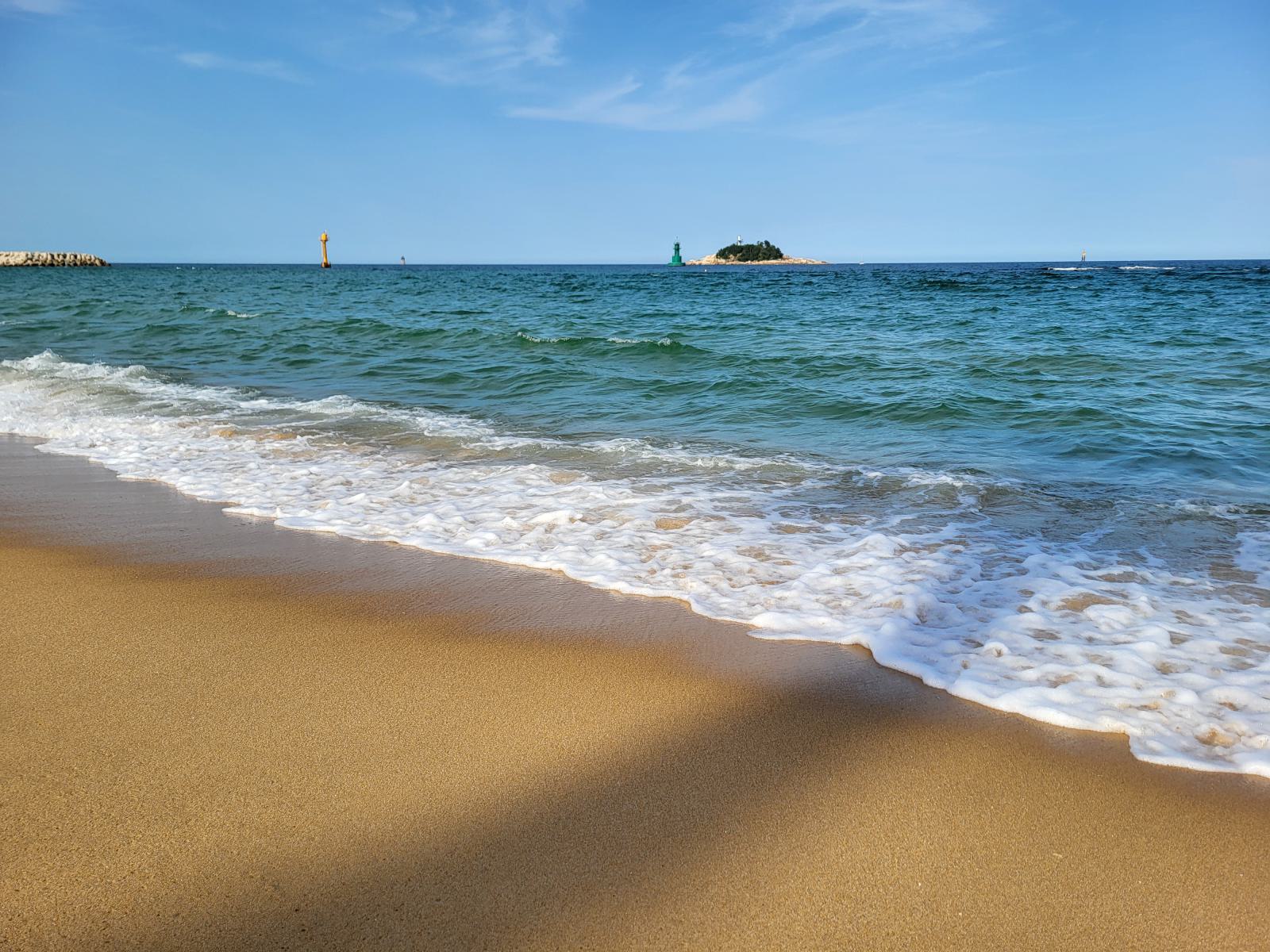 Es war noch früh und noch nicht viel los, aber es lagen Leute in der Sonne und einzelne waren im flachen Wasser. Eine laute Trillerpfeife ertönte und wir machten eine Frau in Warnweste als Quelle aus. Mist, baden doch verboten? Nein, sie rief nur jemanden im angrenzenden Pinienwäldchen zur Ordnung. Dann entdeckten wir die Polizeistation, mitten am Strand. Darauf, dass es keinen interessiert, wenn wir ins Wasser gehen, konnten wir hier also nicht spekulieren.