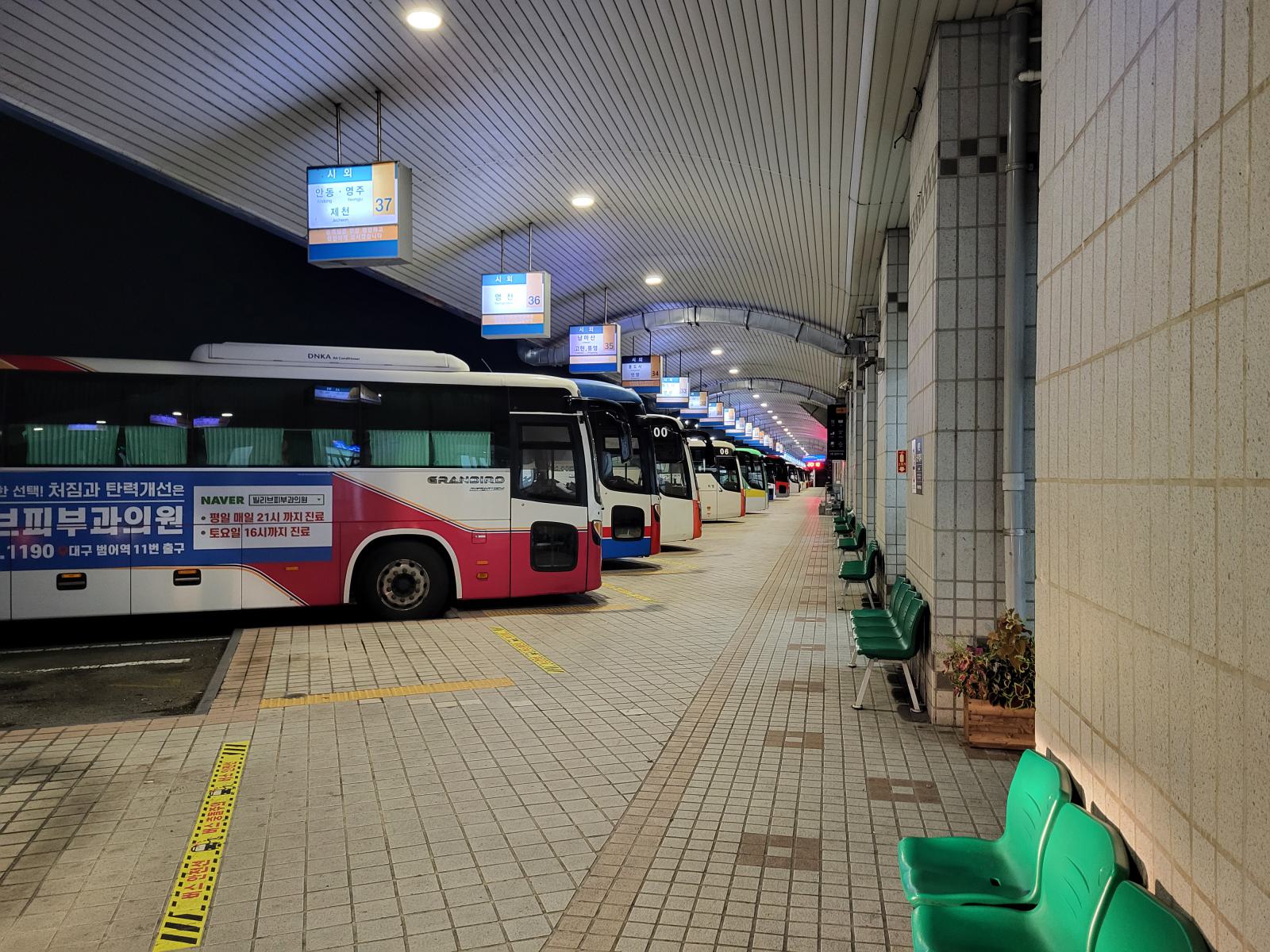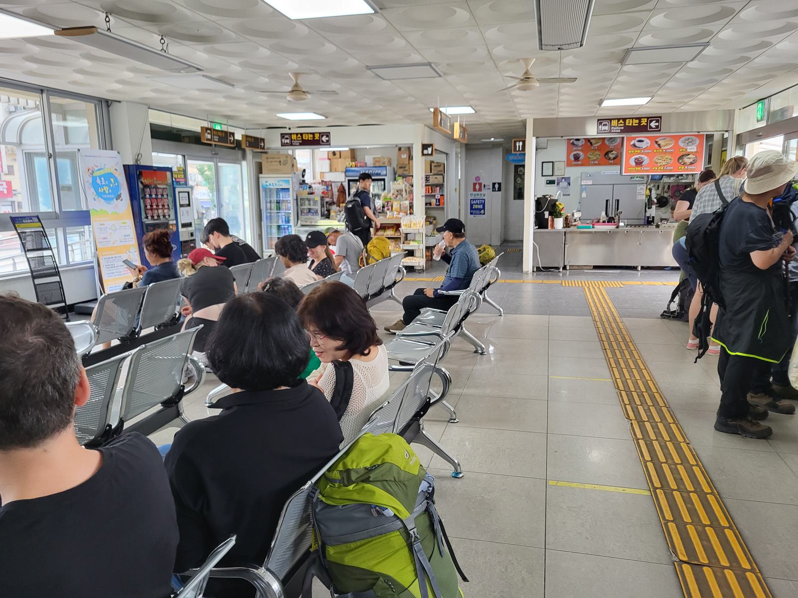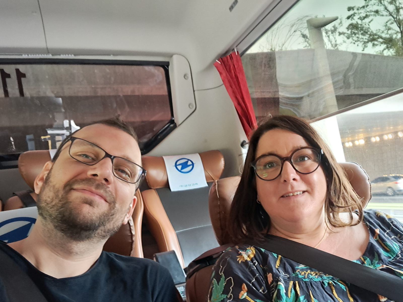 Als ich zurück kam, war der Bus schon weg, ohoh. Natürlich hatte ich weder Telefon noch Reisepass oder Geld dabei. Ein aufgeregter anderer Busfahrer, sah mich und fragte: Busan? Er lud mich nur ein und fuhr los, vom Gelände runter. Oha, dann fahre ich wohl die nächsten drei Stunden mit diesem Bus, als einziger Fahrgast. Aber er fuhr nur ums Terminal herum zum Haupteingang, wo unser Bus stand und Christian gerade etwas traurig, weil bei seiner Suche erfolglos, mit meiner Handtasche aus dem Terminal kam.