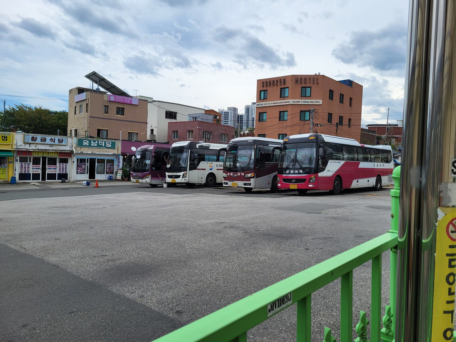 Am Nachmittag zogen wir weiter. Die Fahrt nach Busan dauerte fünf Stunden. Anfangs hielten wir noch regelmäßig und bis Gangneung stiegen die meisten Leute aus. Dort legten wir eine längere Pause ein. Aber wer konnte das ahnen? Der Busfahrer tankte und ich dachte, das ist ein guter Zeitpunkt um mal zur Toilette zu gehen, die meisten anderen waren ja auch ausgestiegen. Christian meinte noch, ich solle dem Busfahrer Bescheid geben, aber da war er schon weg.