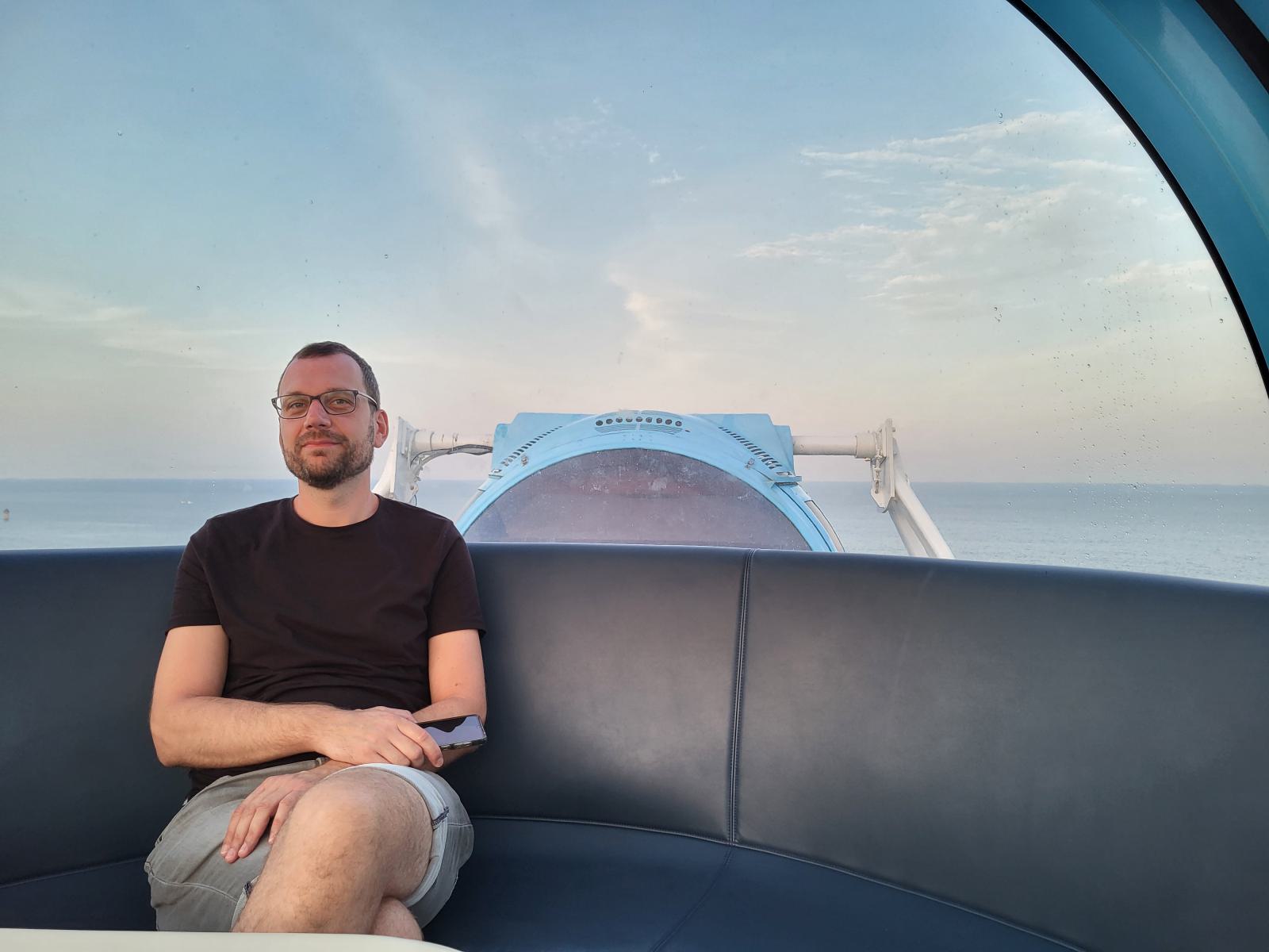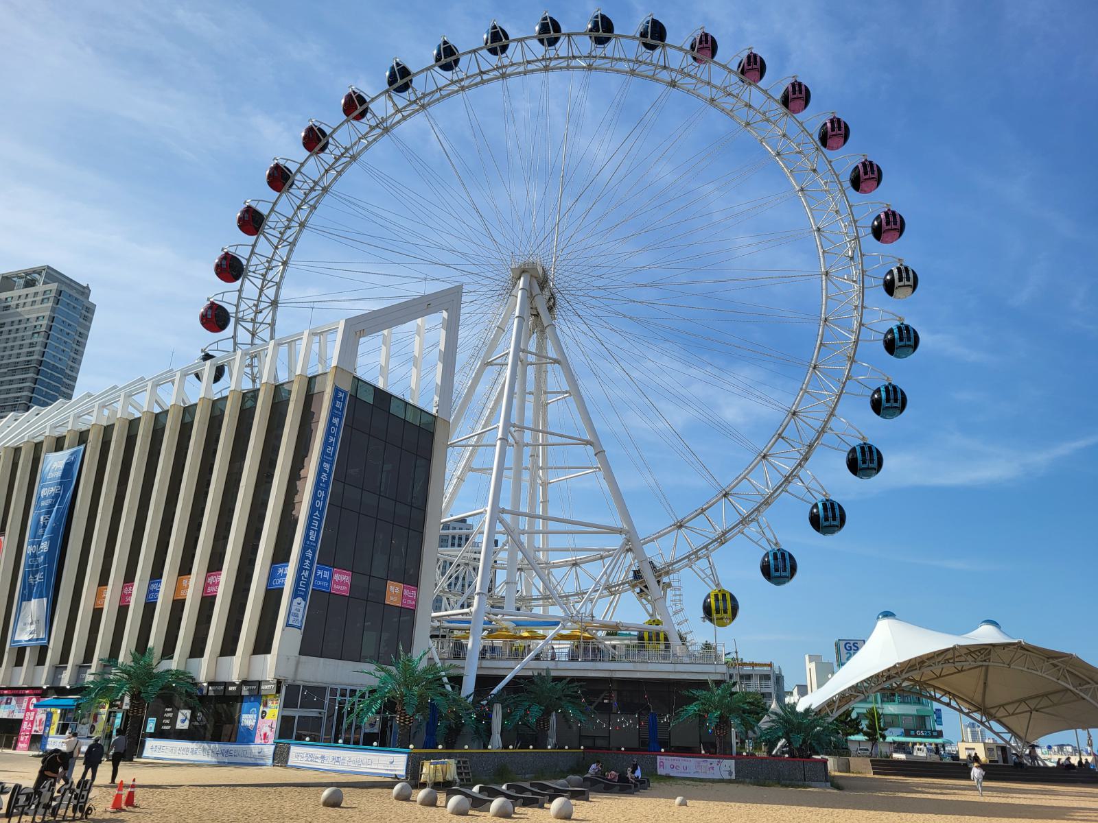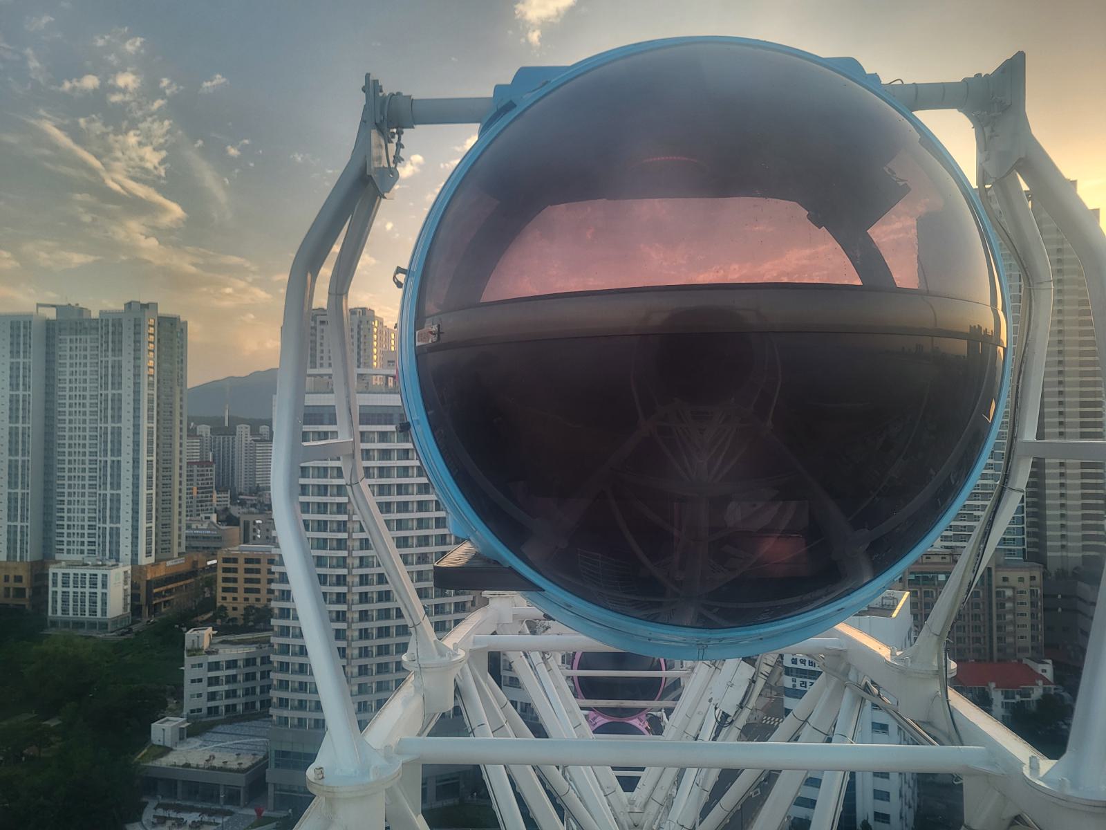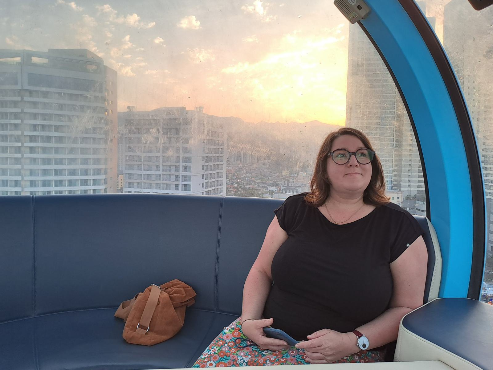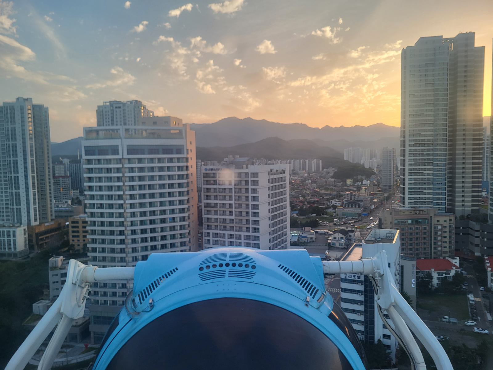 Im Wohngebiet nebenan gab es Eiskaffee und Käsekuchen mit Blick auf die kleine Insel und den Leuchtturm, danach fuhren wir Riesenrad. Zum Glück waren wir so gut abgepustet und geduscht, denn „covered in sand” war in den Kabinen verboten. Wir hatten die perfekte Zeit abgepasst, hinter dem See ging gerade die Sonne unter und tauchte die Stadt in rosa-goldenes Licht. Von oben konnten wir Abai Island sehen, den endlosen Sandstrand und in der Ferne die Berge des Nationalparks.