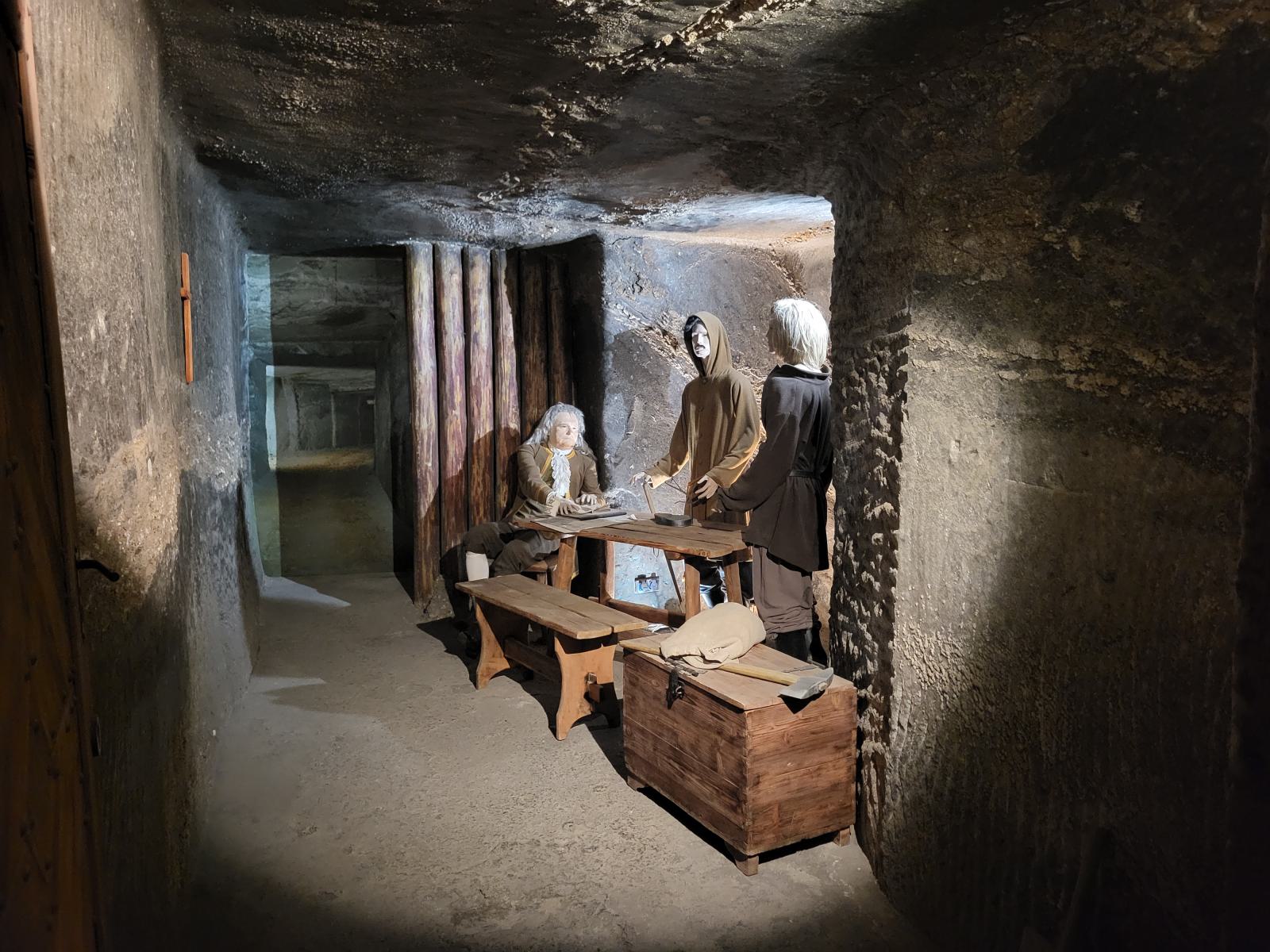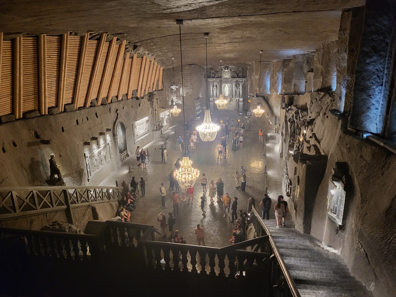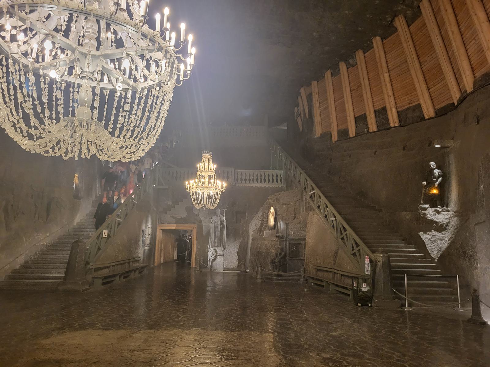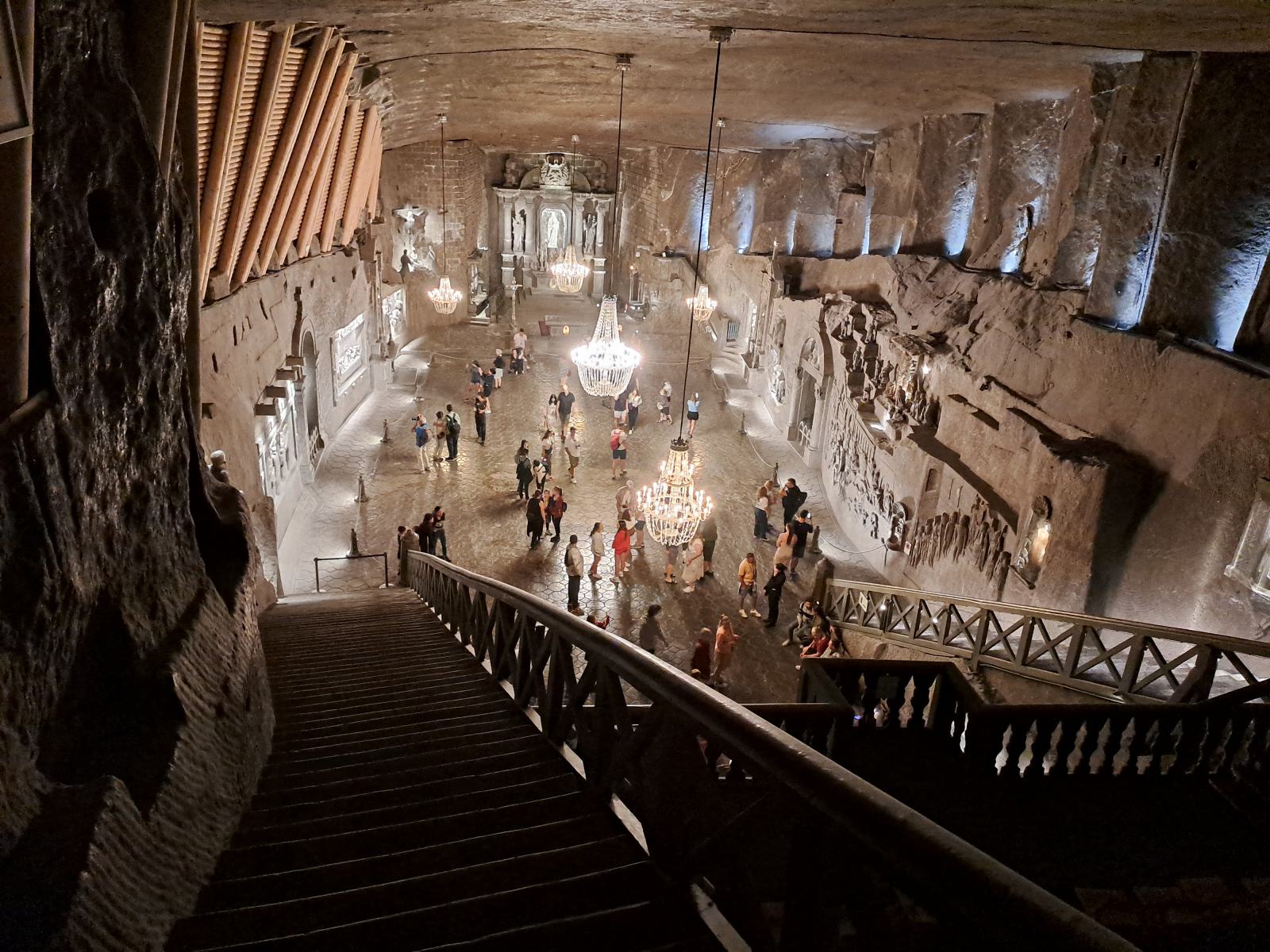 Jetzt ging die Führung bald los. Wir bekamen einen Audioguide, sodass wir unsere Guide von überall hören konnten. Zum Glück, denn Polen sind nicht nur beim Essen schnell. Hier und da mussten wir uns ganz schön beeilen. Erstmal mussten wir aber die 700 Stufen in das Bergwerk hinabsteigen und hofften, das was dran ist, an dem Gerücht mit dem Aufzug nach oben.