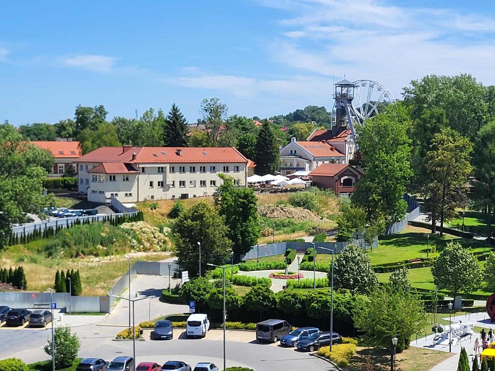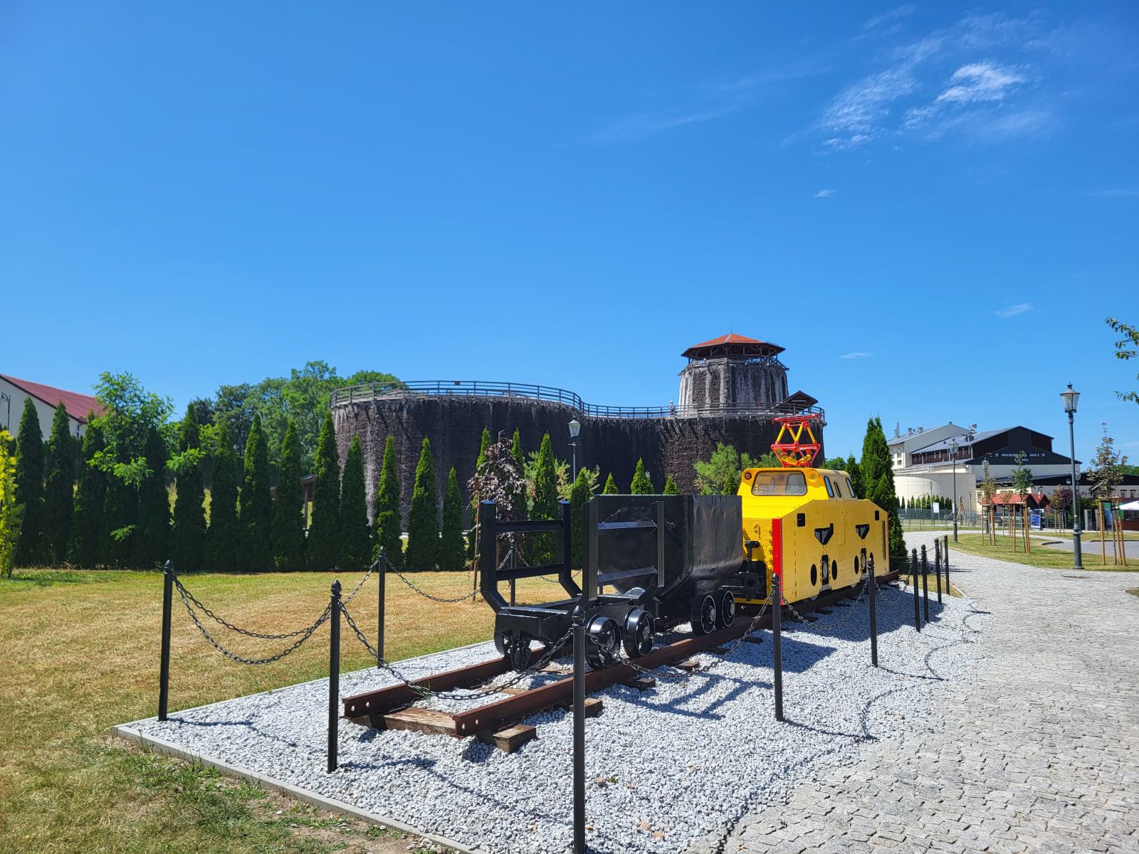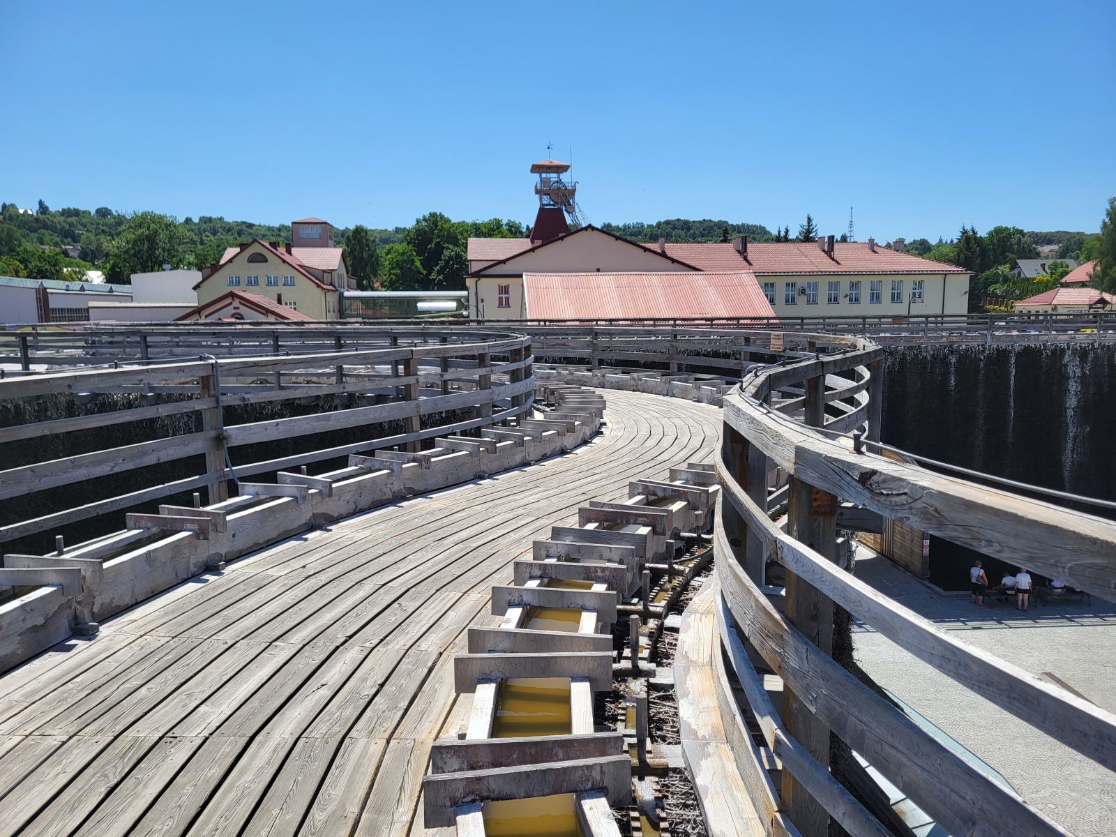 Von oben gab es eine gute Aussicht über das riesige Bergwerksgelände, die Kurhotels, Ausstellungen mit Fördergeräten, Parks und noch genutzte Schachteingänge. So langsam dämmerte uns, dass das hier doch nicht irgendein Bergwerk ist.