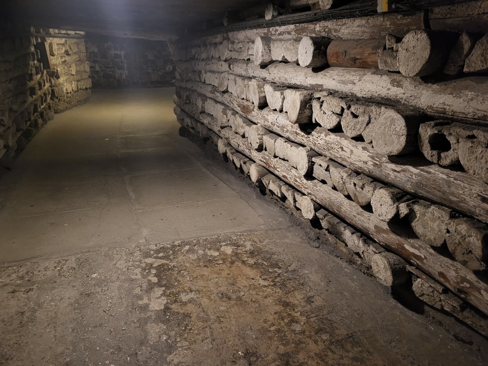 Später ging es über Treppen durch eine riesige, schummrige Höhle noch tiefer nach unten. Hoffentlich gibt es diesen Aufzug wirklich. Unten liegt ein kleiner See und ein mit Holz verkleideter Gang, durch den man früher mit dem Boot fahren konnte. Im 19. Jahrhundert soll das eine angesagte Veranstaltung gewesen sein, mit unterirdischem Feuerwerk und Häppchen. Jetzt herrscht hier eine friedliche, geheimnisvolle Stimmung.
